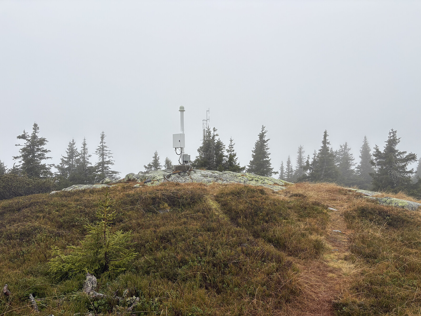 Jeg parkerte på den store p-plassen utenfor bommen ved innkjørselen til Finndalen. Herfra syklet jeg til sørsiden av fjellet og opp til toppen herfra. Dessverre var det ganske tåkete denne dagen, så utsikten ble nok ikke helt som den burde være da det så veldig åpent og fint ut. Antennemast på kollen og en mindre installasjon på selve toppunktet.