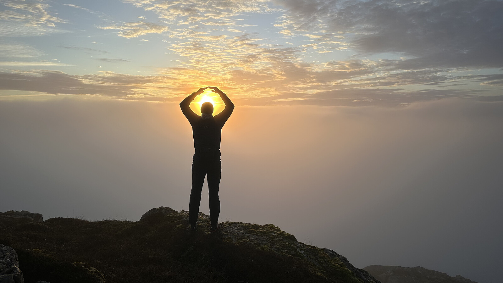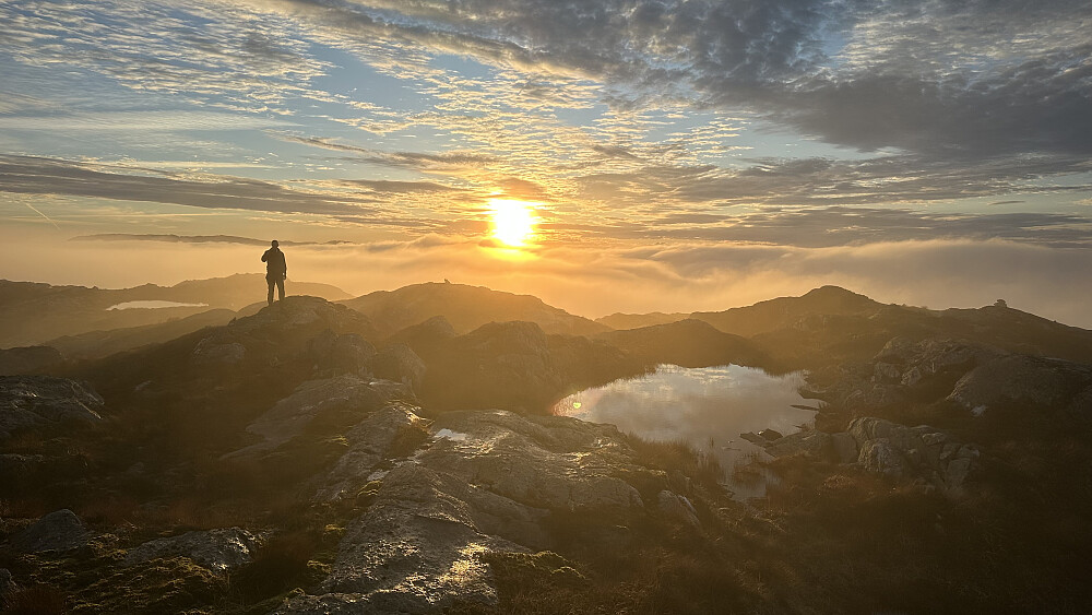 Kjekt å få nyte ein solnedgang ifrå fjelltoppane!