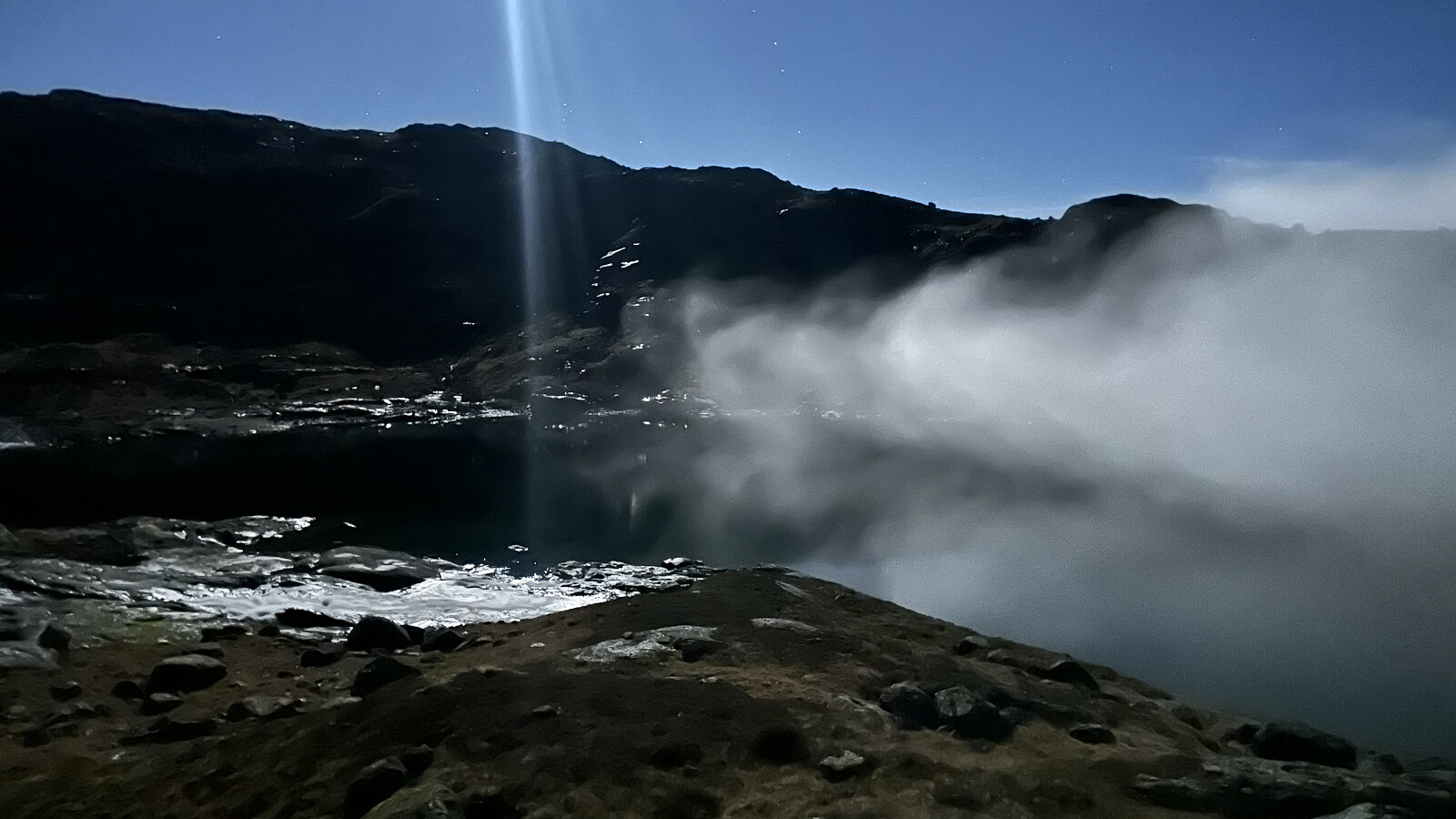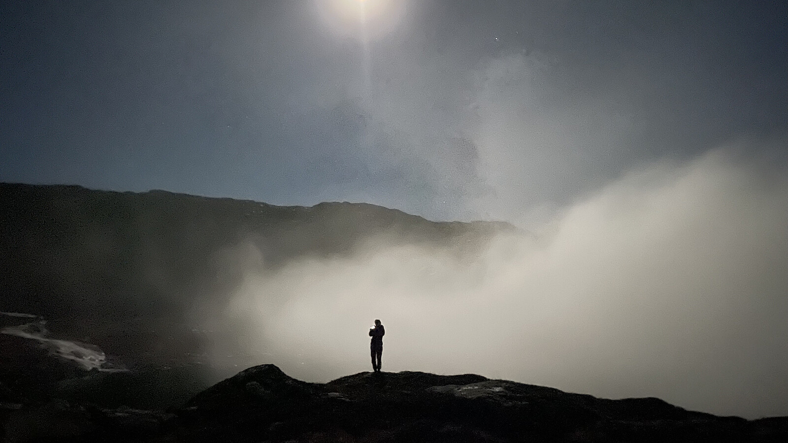 Nesten ein fullmåne og klart! Skodda kjem trolskt!