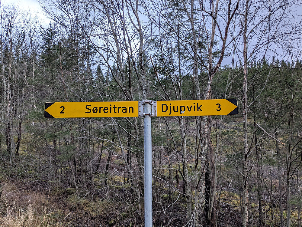 Jeg tok ferja fra Lund til Hofles, og kjørte til Kolvereid, Saltbotnkorsen og videre etter Månesvegen til Rød. Og inn på Søreitervegen. Passerte Vangsåsen, en livlig plass i gamle dager. Fortsatte til Sør-Eitran og parkerte ved grendehuset. Gikk nord for Vassbjørga og videre til Dyrhaugtinden (258 moh)på Svanhaugan. For å nå neste mål måtte jeg ned til Hjelmsengbrekkå. Bratt nedover, men flott bjørkeskog hele veien. Å komme seg opp til neste mål på 197 moh. var mer krevende. Mosegrodde steiner i alle fasonger i bratta opp til toppen. Flott utsikt mot Risværet. Retur opp til myra nord for Svanhaugan. Her kom jeg inn på en tydelig sti som ble til en traktorvei ned mot Osplia. Nede ved gården var det ei infotavle om en sjekk ut tur til Lauvhatten. Fortsatte etter veien til grendehuset. 6 kilometers tur.
