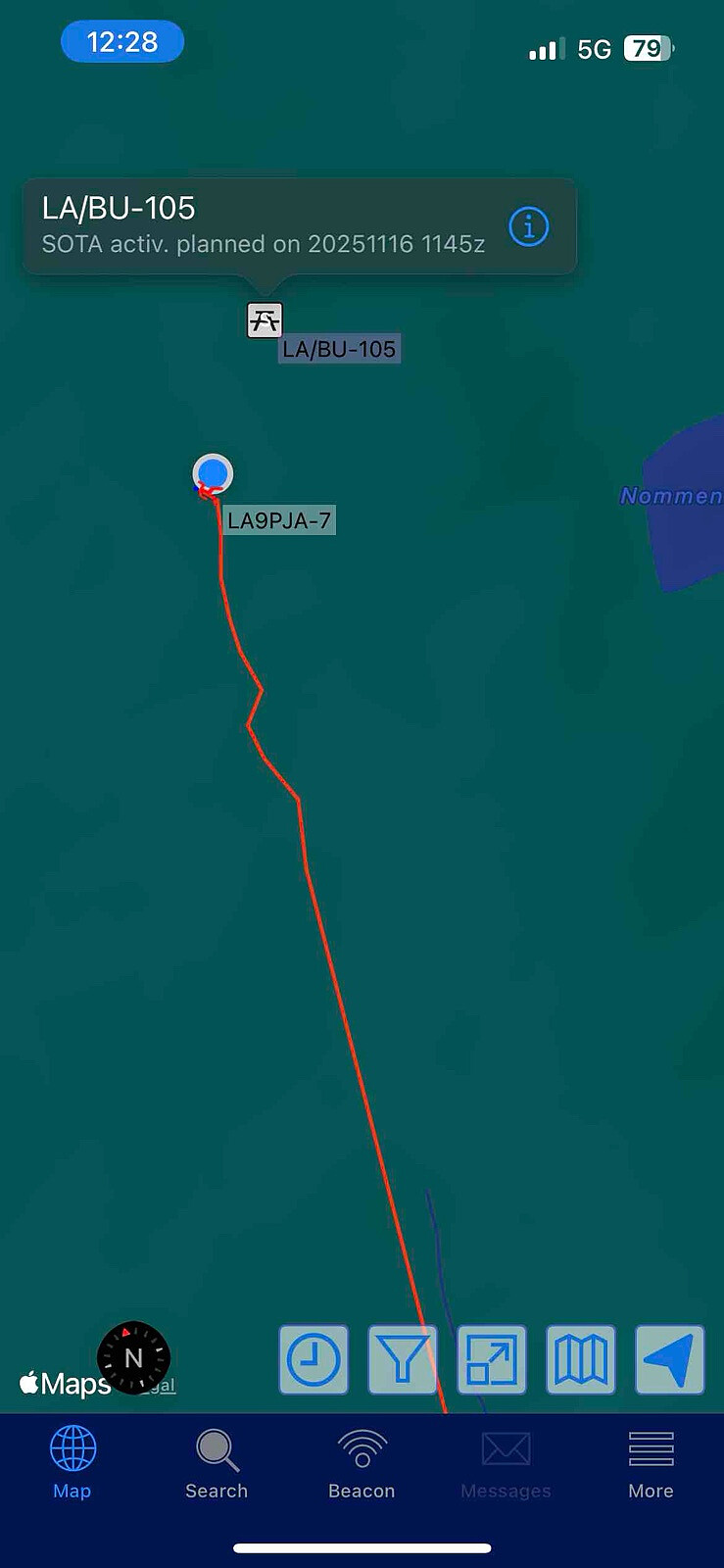 Ingen sti var merket, så dette er neppe en populær topp som mange besøker. Ifølge min radioapp har det vært fire registrerte aktiviteter der tidligere, i 2015, 2021, 2022 og 2024, så jeg var den femte som “radioaktivterte” fjellet på radiosystemene.