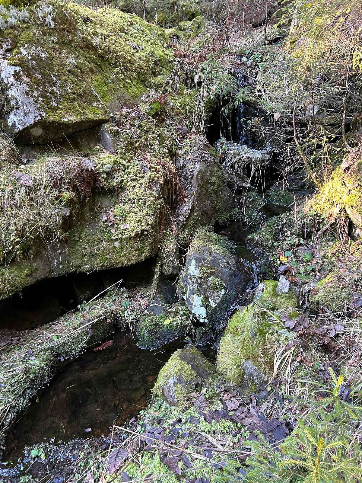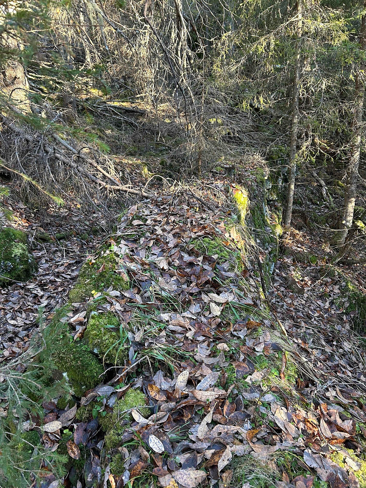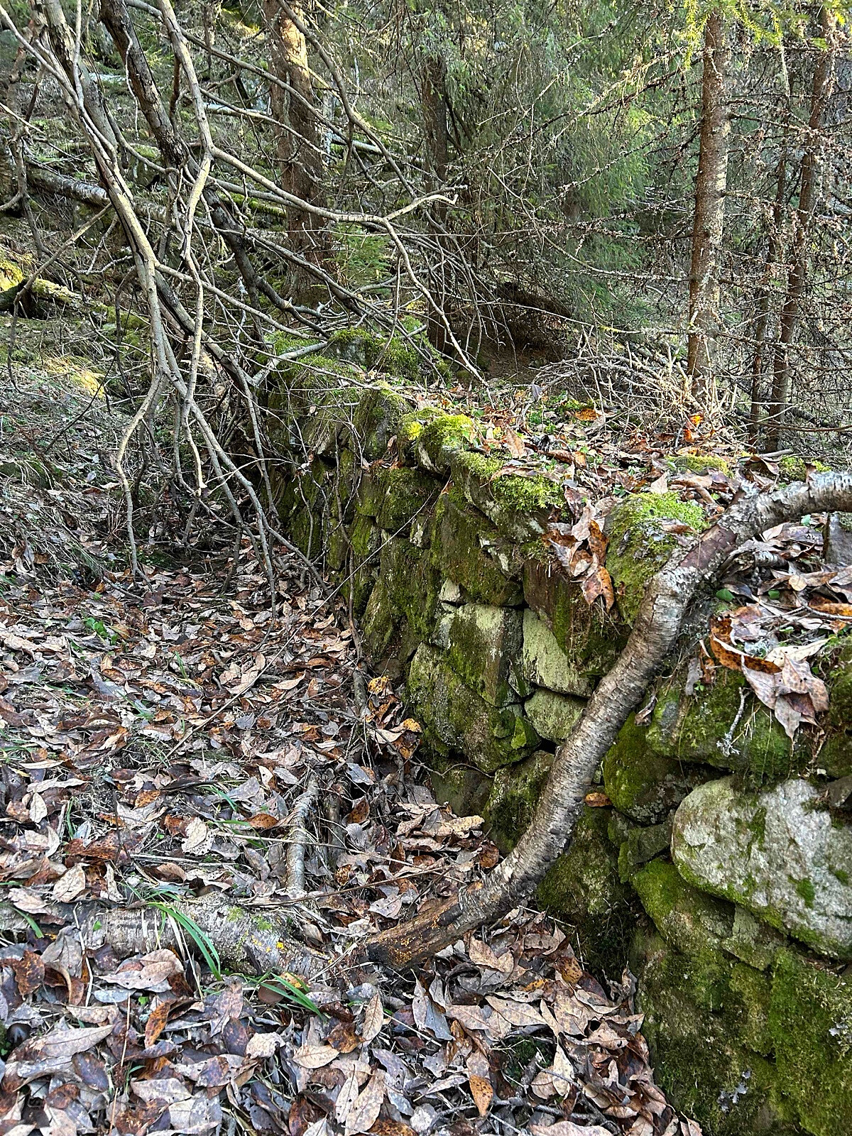 Det har sannsynligvis vært menneskelig aktivitet der tidligere, selv om jeg ikke har undersøkt historien, men jeg la merke til flere steinmurer som trolig stammer fra gruvedrift eller vannkraft.