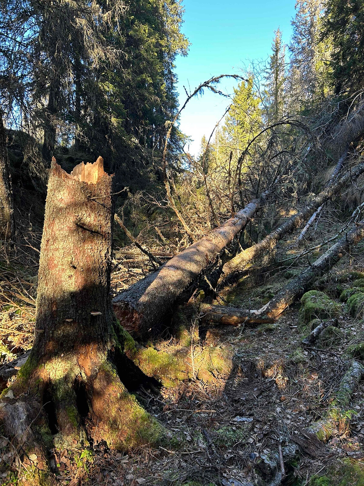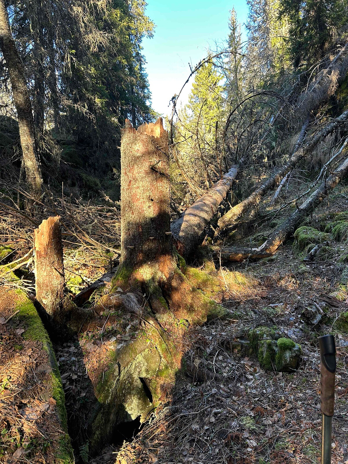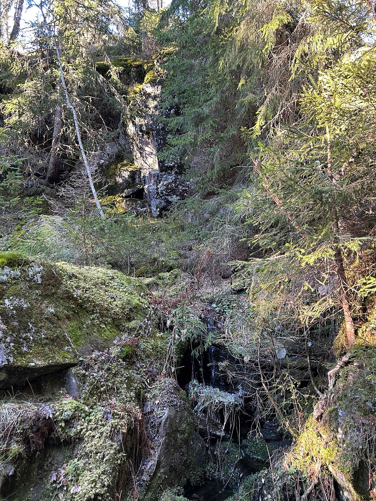 Det har sannsynligvis vært menneskelig aktivitet der tidligere, selv om jeg ikke har undersøkt historien, men jeg la merke til flere steinmurer som trolig stammer fra gruvedrift eller vannkraft.