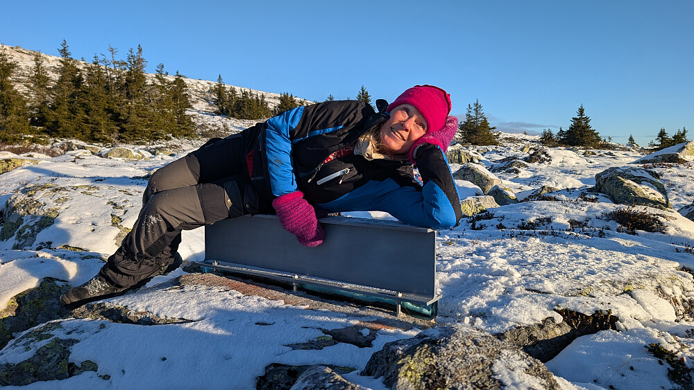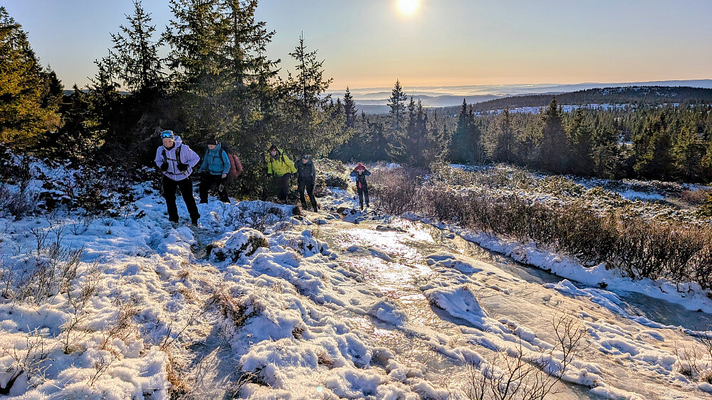 Ellers friskt og rimelig kaldt idag. Kald sur vind og ca 8-10 minus. Likevel kjente vi at solen varmet en smule. Matpause inne på hytta på toppen. Takker alle for en fin frisk tur. Tur med Agnete, Irene, Linda, Siv og Nils Jørgen.