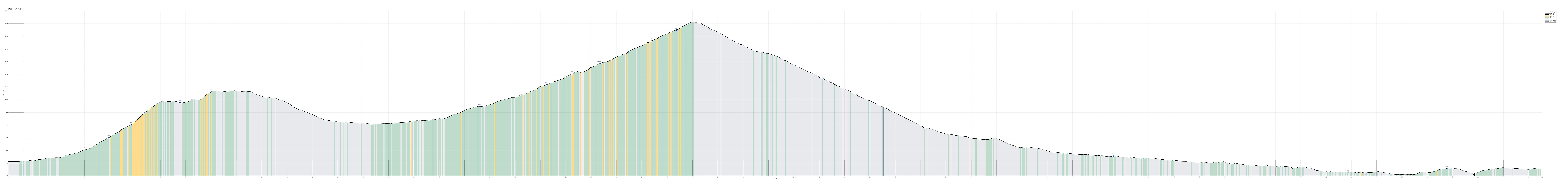 Height profile with indication of inclination as well as height meters up (blue markers).