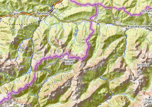 On the first (first real) day of our four-days bike ride through the Julian Alps, we aimed at biking from Erlendorf to Bovec over Wurzenpaß and Vršič. Starting at about 8h30 in the morning in Erlendorf, we headed for the street that leads up to Wurzenpaß immediately. After only about half a kilometer, it became clear that cycling up to Wurzenpaß would be harder than originally anticipated (the rather naive, initial idea was that Wurzenpaß would serve as a quick and not-too-hard warm-up exercise before going for the real pass over Vršič). Even though it was "only" about 500 height meters up from Erlendorf, the challenge was in the slopes, which topped out at about 18% (very steep for cycling indeed)! On Wurzenpaß, we stopped to look at an old tank right next to the road, which reminds visitors of WWII and the time of the cold war. On the southern, Slovenian side of Wurzenpaß, we then cycled down to Podkoren, before continuing to Kranjska Gora on a nice cycling path parallel to the main road. From Kranjska Gora, we then started our second (and longer) ascent, up to Vršič. We first entered the rather beautiful (and also quite tourity!) lower section of river Pišnica, coming by also the Pišnica waterfall. As soon as we had passed by the last houses of Jasna / Kranjska Gora, we entered the Triglav National Park, following the road further up the Pišnica valley (on its western side). Further south, when reaching a height of about 1000masl, the road then ascends into a valley that's in the northwest of Prisank (whereas the main valley extends more towards the northeast of Prisank). From there, it's then still about 600 height meters further up, before one reaches the saddle point at Vršič. It does take some time, but cycling up this mountain road from Kranjska Gora is really nice (even though the area is apparently very popular among tourists, resulting in quite a number of cars -- still, all the traffic was slow and cautious when we were there! :-)). Once on Vršič, we first enjoyed a nice, short break, before then heading further southwards (into the Soča / Isonzo valley). At the Supca viewpoint, we made a short stop, and then we took the main hairpin curves down to the Soča. Next, we passed through Trenta, heading further out the Soča valley. Quite a bit further out the valley, we then stopped to see the Great Soča Gorge, which really is an interesting formation to look at (at this place, the Soča river is carved deeply into the surrounding rocks, forming a really impressive, narrow gorge)! Yet another stretch down the road, we stopped again; this time to inspect what's left of the Golobar Telpher Line (originally built to support one of the many war efforts in this valley; later used to bring down logs from the forest high up the steep slopes next to the Soča river). The last stop before eventually reaching Bovec, the target location of this day's ride, was to visit a large cemetery in the northeast of Bovec, where over 500 soldiers from the Austro-Hungarian army are buried, fallen in the 12th Isonzo battle of WWI. From there, it was then not far to cycle over and into Bovec, where we had a room to stay for two nights.