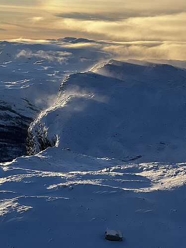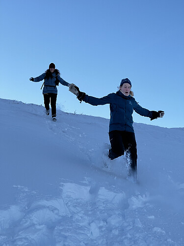 I enkelte leområder sank vi ned til låret. Det var gledelig å se at alle vann var helt islagt og nedsnødd og at temperaturen i høyden var såpass lav. Mye tyder på at det blir en bedre vinter i år enn i fjor. Håper da for guds skyld det!