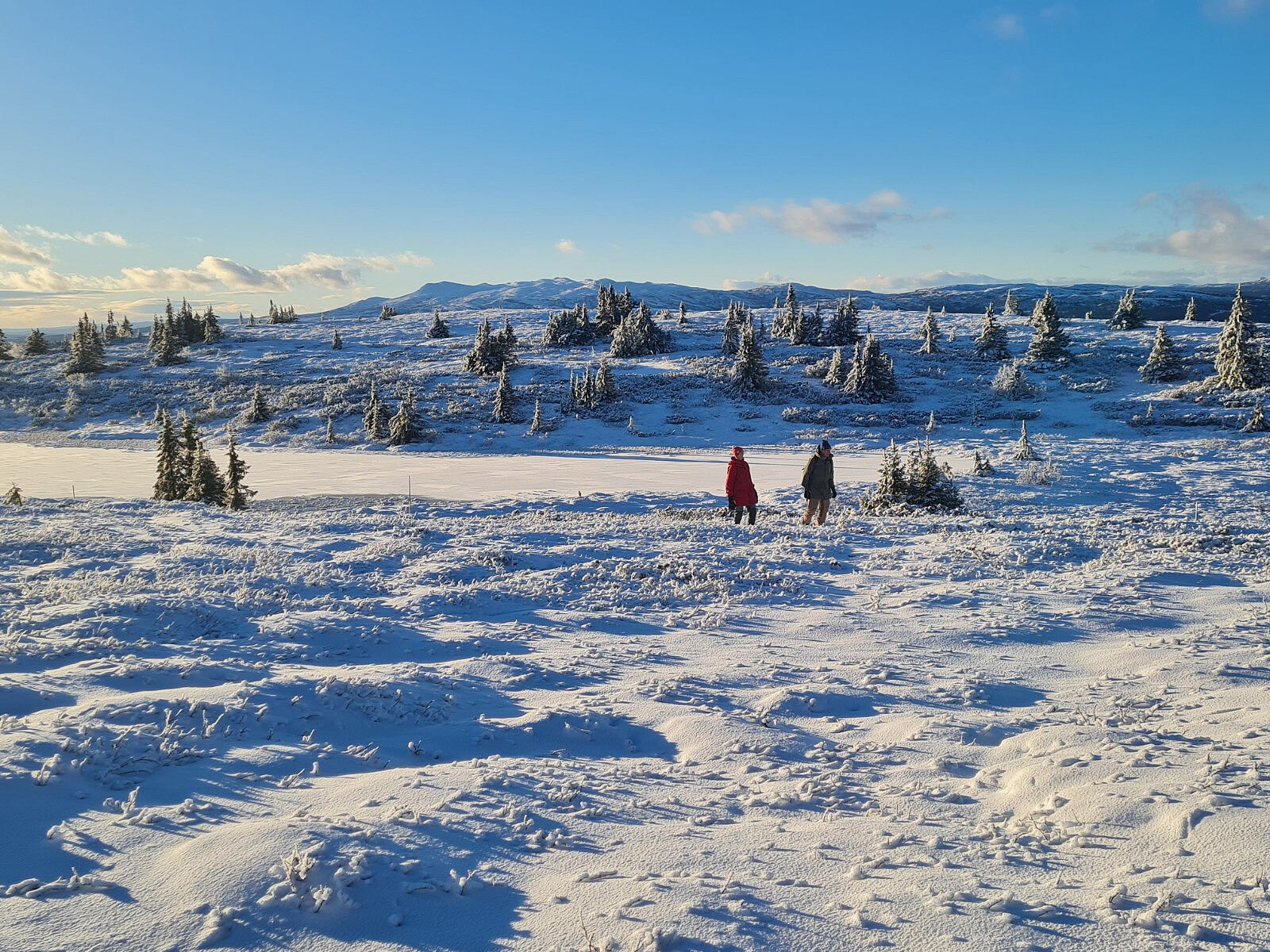 Hanne og Knut, og jeg, hadde håpet på skitur, men det ble fottur. Kjørte inn Nysetervegen, og parkerte ved innkjøringa til Fangenshytta. Over 10 cm med snø på plassen her, og det hadde vært mulig å gå Nysetervegen med grusski. Ble en fin tur i finværet til Myssmørhelje, hvor vi snudde og gikk samme vei tilbake. Ganske så sterk vind, men greit å gå i snøen.