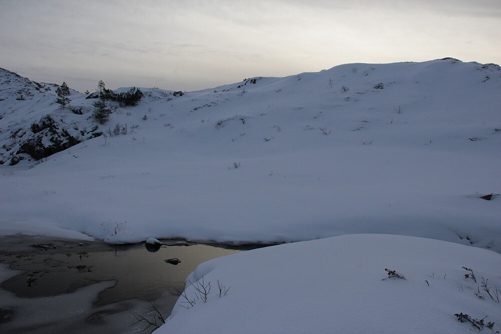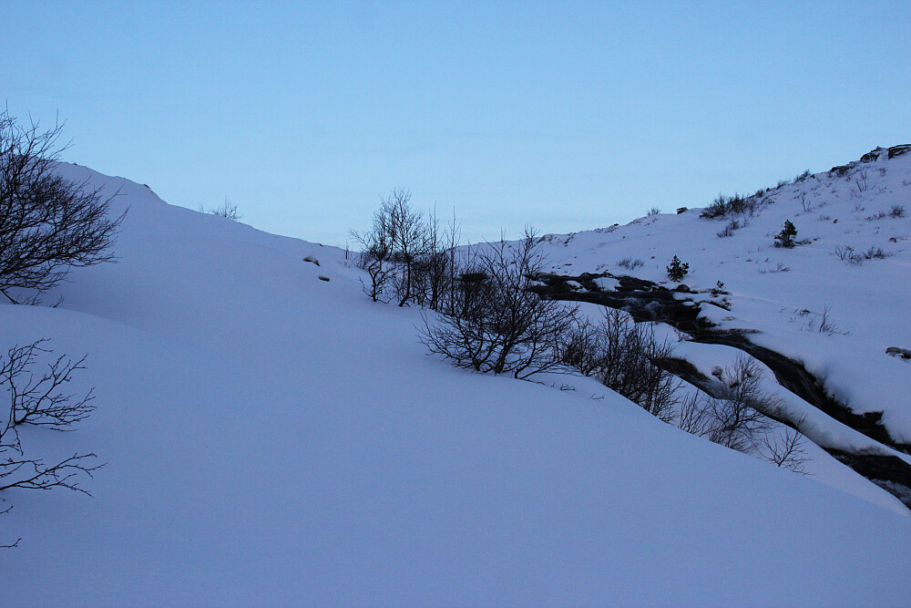 Fin runde på nysnøen. Litt vind på toppene, lite sol, mer pastellfarga vinterlys. Nesten nede på lysløypa fra Moldeheia oppdaga jeg at kameraet lå igjen på toppen. Dermed bar det opp igjen, og videre bortom Tågheia. Lite folk på ski, tross silkeføre over skogrensa og i lysløypa.