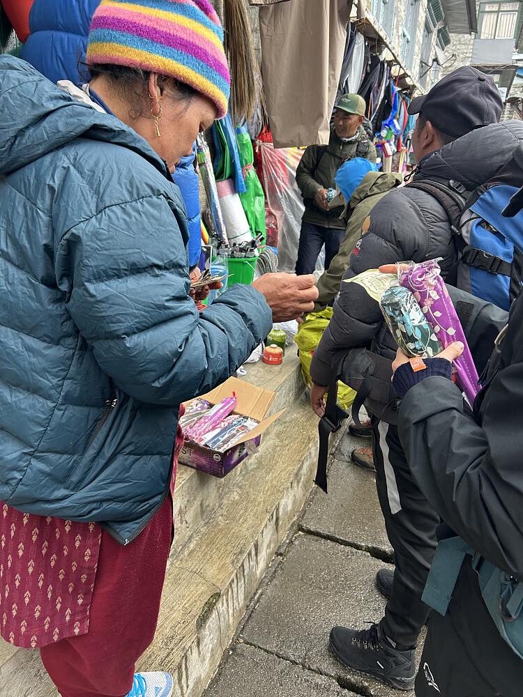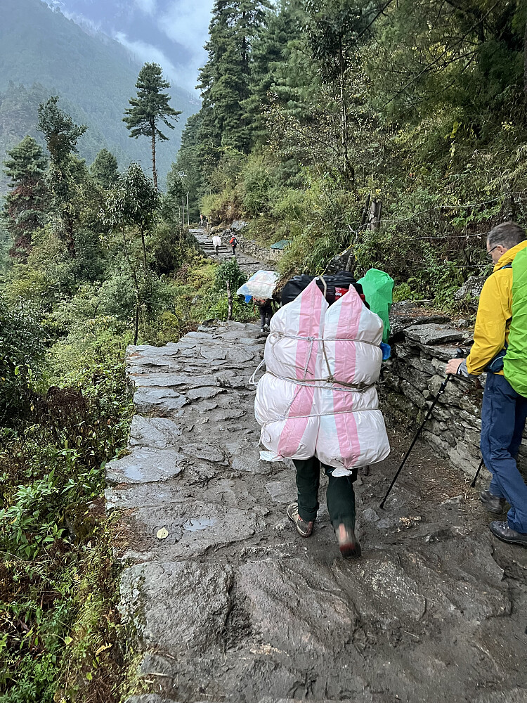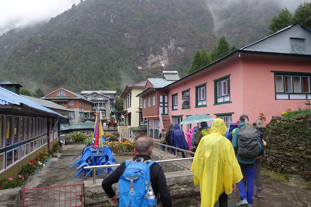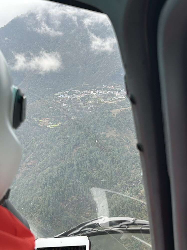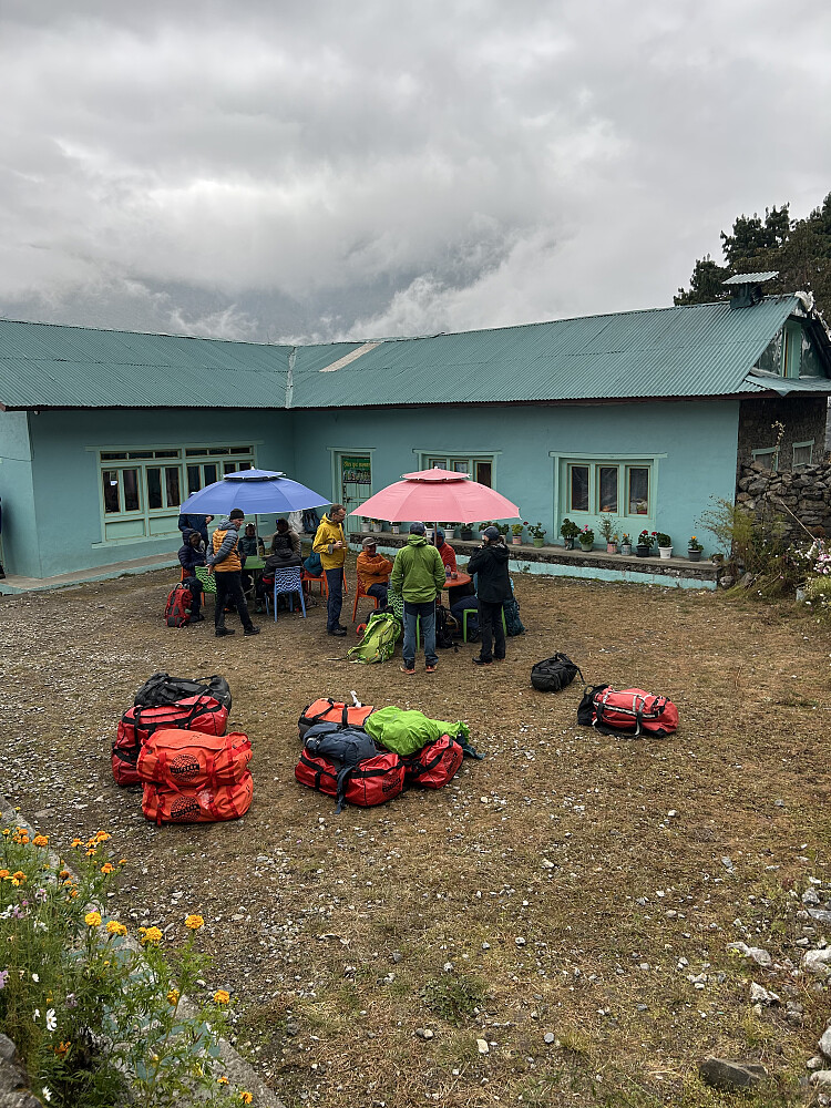 Etter en natt med dårlig søvn, ble vi vekket 0520 - med beskjed om at det var på tide å komme seg til flyplassen…. Det gikk noen fly (de som hadde ventet siden dagen før), og så var det stopp. Etter en rask rådslagning i gruppa, ble det helikoptertransport til Lukla. Et stort pluss for opplevelsen (og et stort innhogg i reisekassa). Vi måtte ha tre løft for å få med hele gruppen. Vi var på det andre løftet - så mer venting. Da gruppa var gjenforent i Lukla, ble det en siste ompakking - før jakoksene kom og hentet bagasjen vår. Vi fikk en etterlengtet lunsj og noen siste småinnkjøp før vi endelig fikk starta turen innover Khumbudalen. Nedover det meste av turen, men også noen motbakker så svetten fikk komme fram. Litt småregn og tunge skyer la ingen demper på stemningen. Sekretæren fikk testa to av hengebruene hun har grudd seg til. Det gikk på et vis… Etter tre timer - og etter mørkets frembrudd- var vi framme i Phakding. Et ok rom, med egen do - luksus etter ymse dofasiliteter før på turen. Trivelig middag og tidlig kveld.