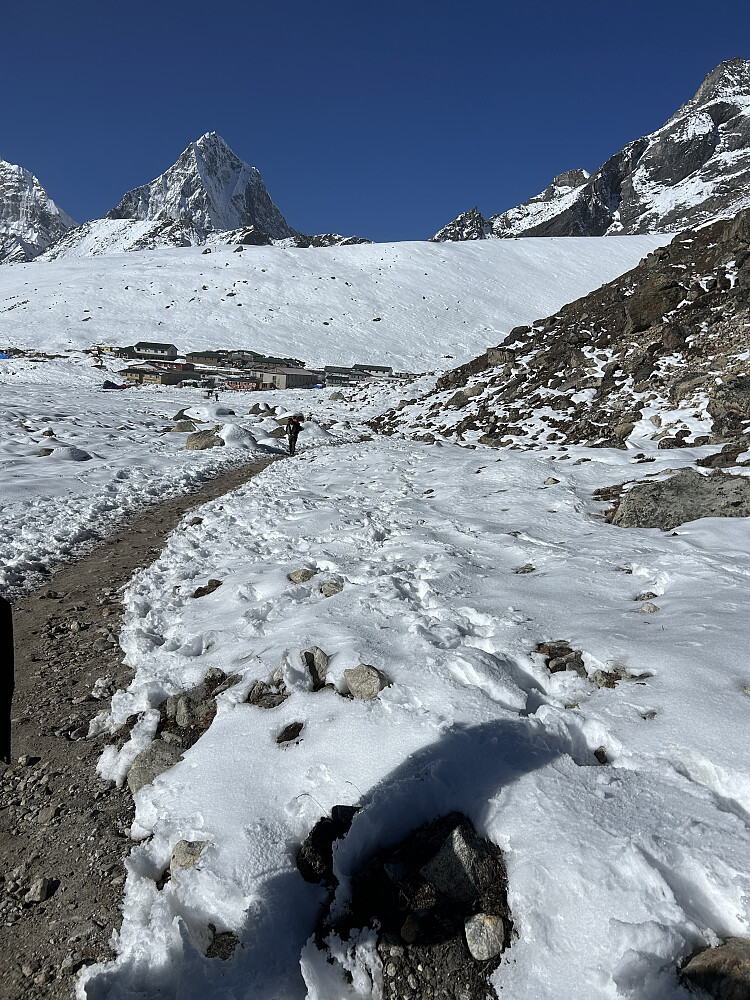 Vi ankommer Gorak Shep for en tepause og skoskift.