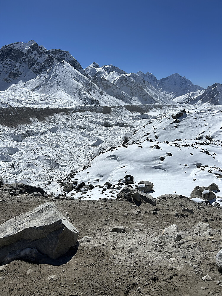 En lang og tung dag. Avmarsj fra Loboche tidlig på morgenen. Ca 5 km i kupert terreng til Gorak Shep - hvor vi hadde en lengre pause. Vi hadde tatt på storskoene, noe som ble i overkant. Godt å få bytta før vi satte kursen inn mot sjølveste Everest Basecamp. Kupert hele vegen, og ymse underlag - fra tørr sti til gjørme, snø og is. Sekretæren ble anbefalt å kutte turen, siden formen er forholdsvis laber. Det var ikke tema. Stort å komme dit, men det var jo bare en grushaug nå utenfor klatresesong, så ble en liten skuffelse. Skremmende å se hvor liten Khumbubreen har blitt, den har minket mye i tykkelse. En tung tur tilbake. Sekretæren var langt ned i reservetanken. Godt å komme inn etter mange timer i sterk sol. Flere i gruppa som var langt ned i kjelleren denne dagen. Det var jo ikke SÅ langt - men 13,5 km i over 5.000 meters høyde, er ikke det samme som 13,5 km hjemme i Heidal… Tidlig kveld - i seng før 20.00.