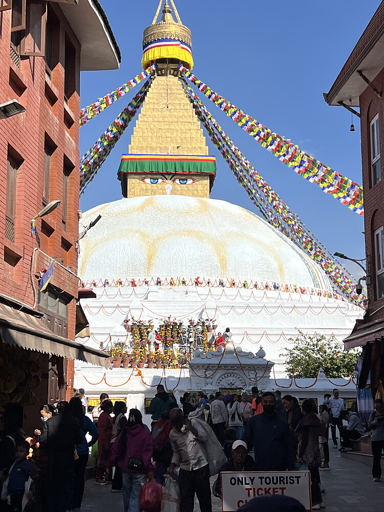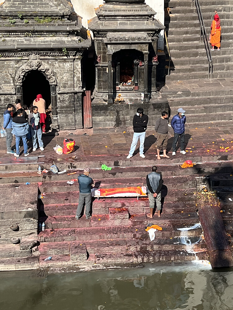 Dagen etterpå var vi i Hindu templet Pashupatinath og Bodnath Stupa. Interessant å se hvordan de begraver sine døde med vask i den hellige elven og brenning i full offentlighet. Asken ble etterpå tømt i elven.