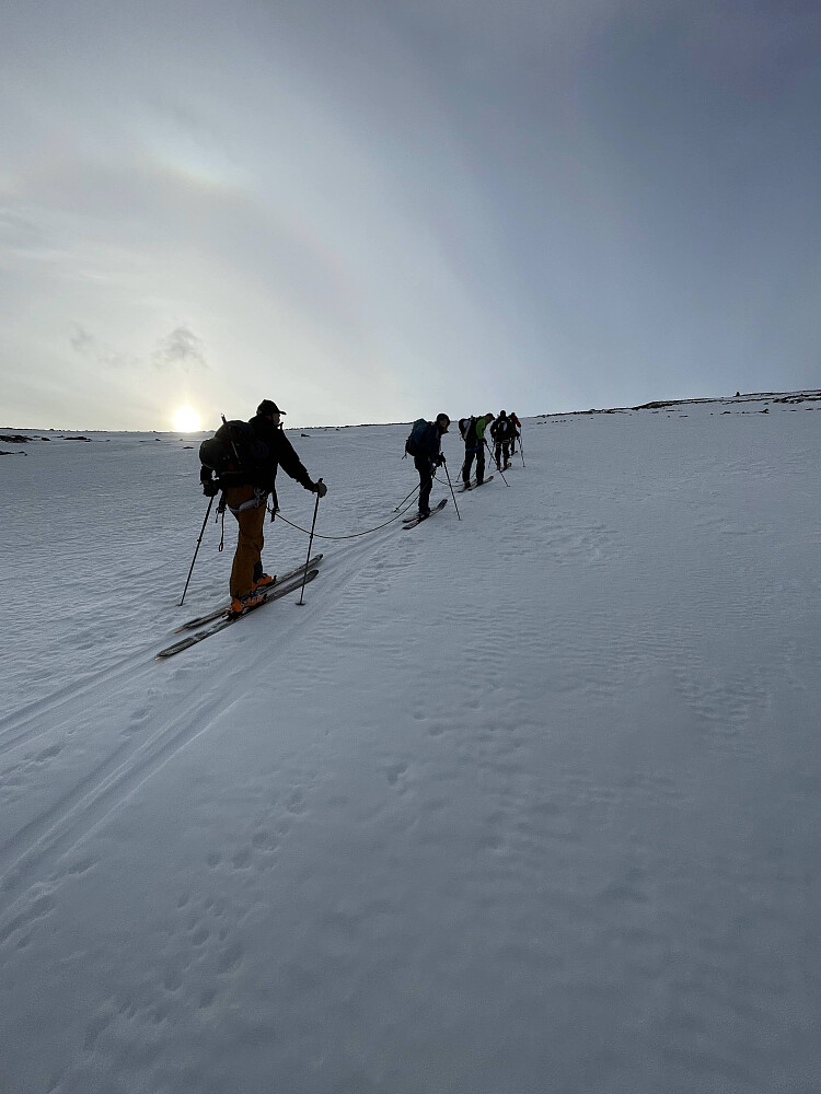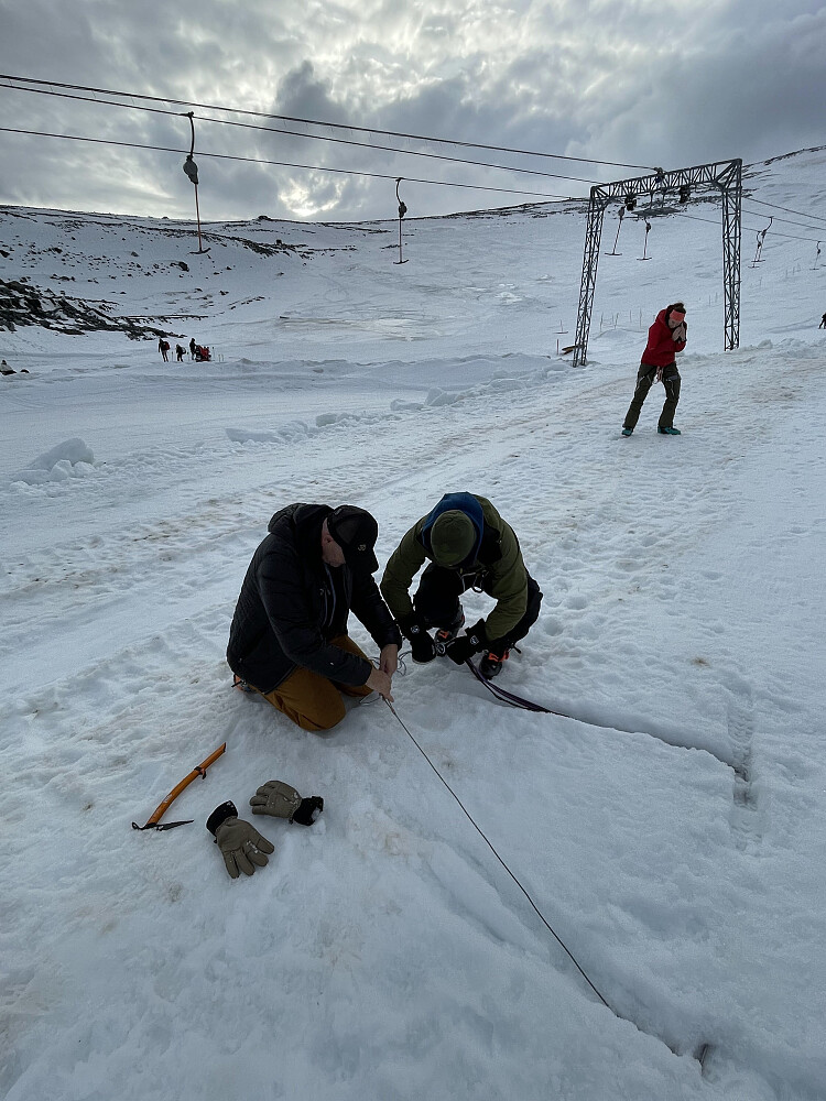 Dagskurs bre oppe ved Galdhøpiggen sommerskisenter i forbindelse med Lom skifestival. Fokus på breferdsel for skikjørere. Trente litt på taulagsteknikker og kameratredning.