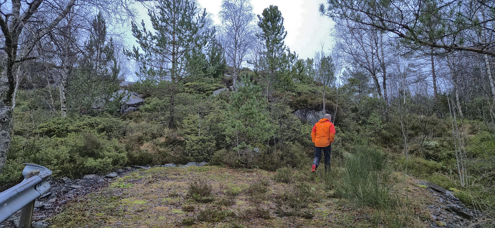 While our ascent to Øksefjellet had been pretty easy due to the marked trail, we had failed to locate any trails to Orretuva. We therefore parked the car at a small parking lot near Fivelsdal, shortly walked east along the main road, and made our own way towards the summit. Initially it seemed as if we had been lucky and stumbled across a weak trail/track but it quickly disappeared, even though we would see traces of it during later parts of the ascent as well. Reaching the highest point was in the end still relatively straightforward.