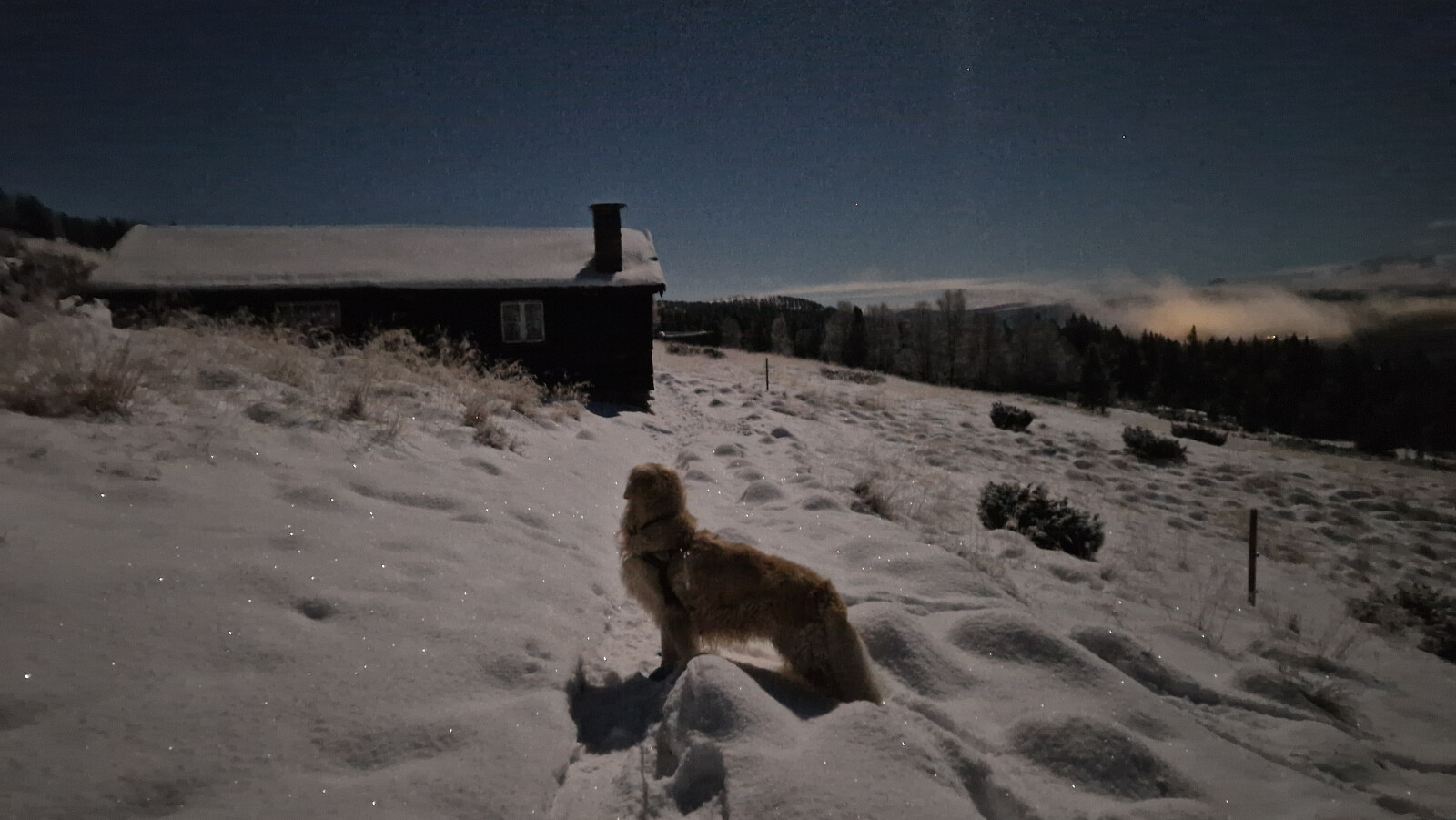 I kveld måtte jeg bare ut på tur. 8-10 minus og fullmåne. Valgte en litt kortere runde. Brukte kun hodekykta i skogen for ellers var det nesten som å gå på dagen.