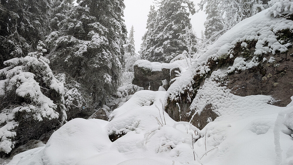 Stor forskjell på føret idag også. Nær null snø nede ved Torsætra, mens det på toppen nok var ca 25 cm snø. Greit opp Jens Hansens sti. Skikkelig vinter her oppe. Tok en lengre pause inne på Rausteinshytta for kaffe og vaffel. Traff flere Åskoper her og slo følge med en av dem på vei ned normalveien tilbake til Torsætra.
