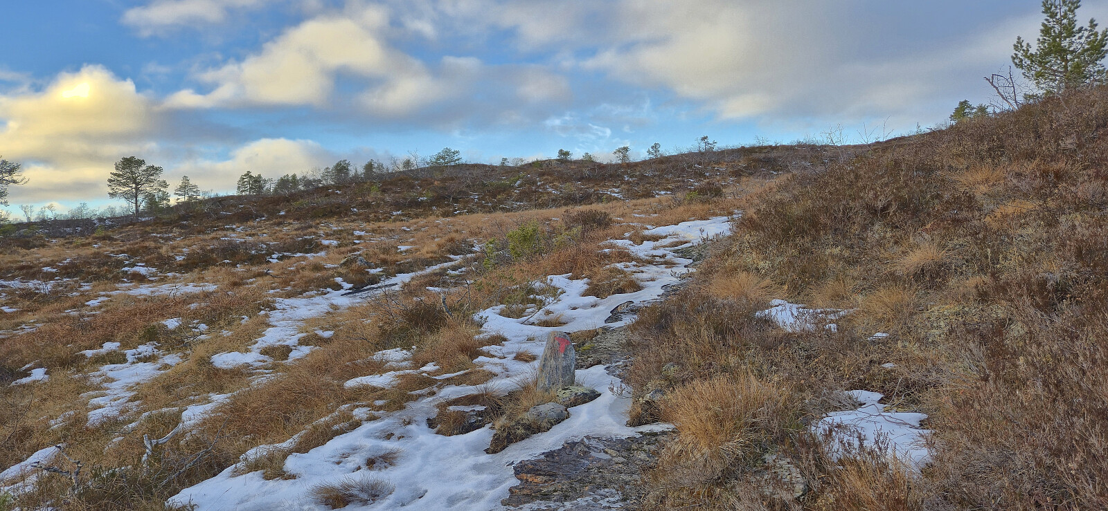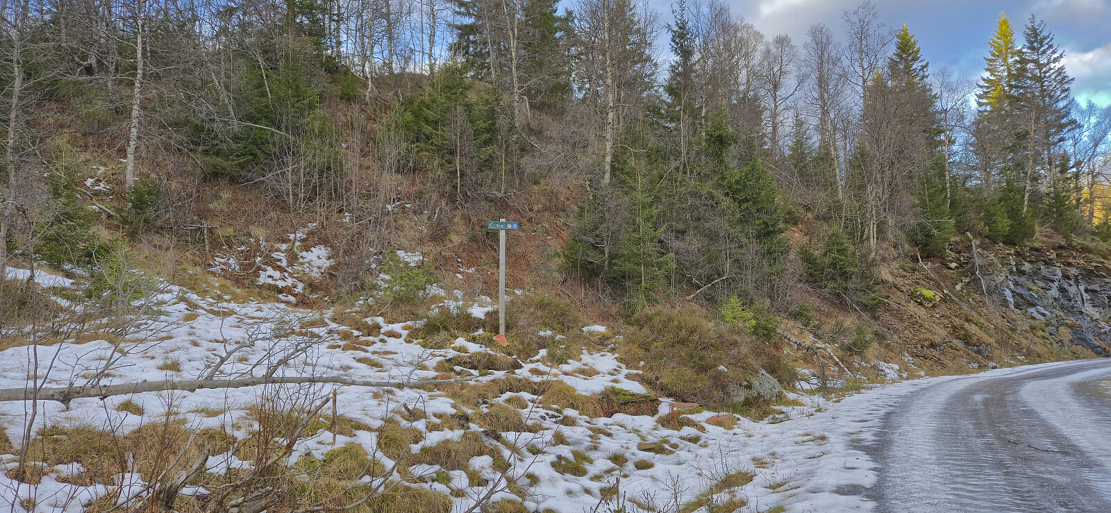 Just south of Helgastøl I left the now very icy gravel road and did my best to follow the partially hidden marked trail via Helgastøl until getting just east of Langelihøgdi. The summit could then easily be reached via a short off-trail detour.