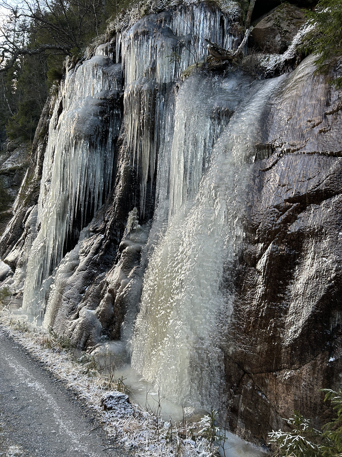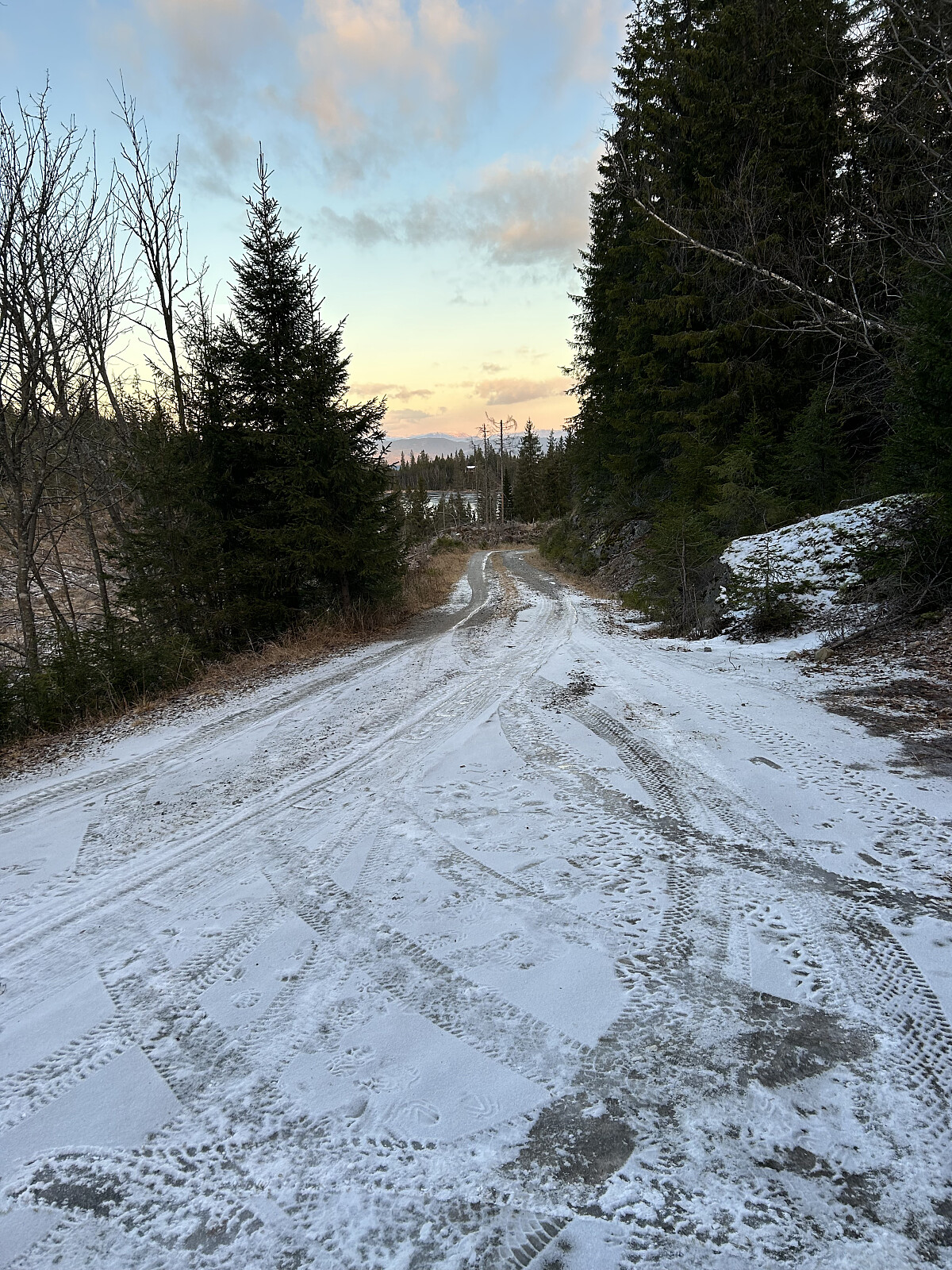 I rapporter fra venner hørte jeg at veiene var glatte med mye is, og det var nesten ikke snø. Kjøreforholdene mot Svartjern parkeringsplass var ikke egnet for kjøring, selv med 4x4 og piggdekk. Veien var stengt, og flere valgte å kjøre videre til Bekkely parkeringsplass som startpunkt for turene.