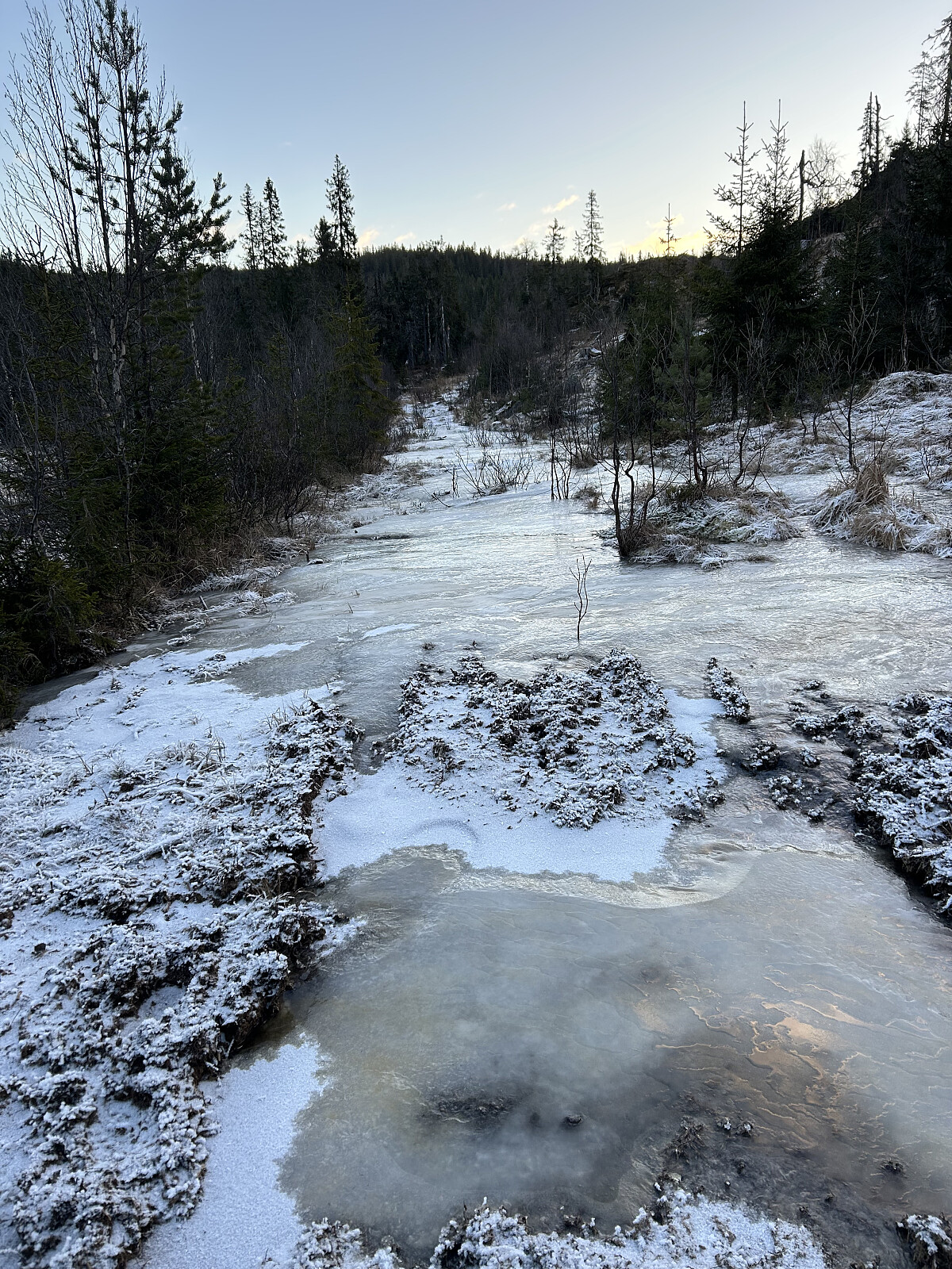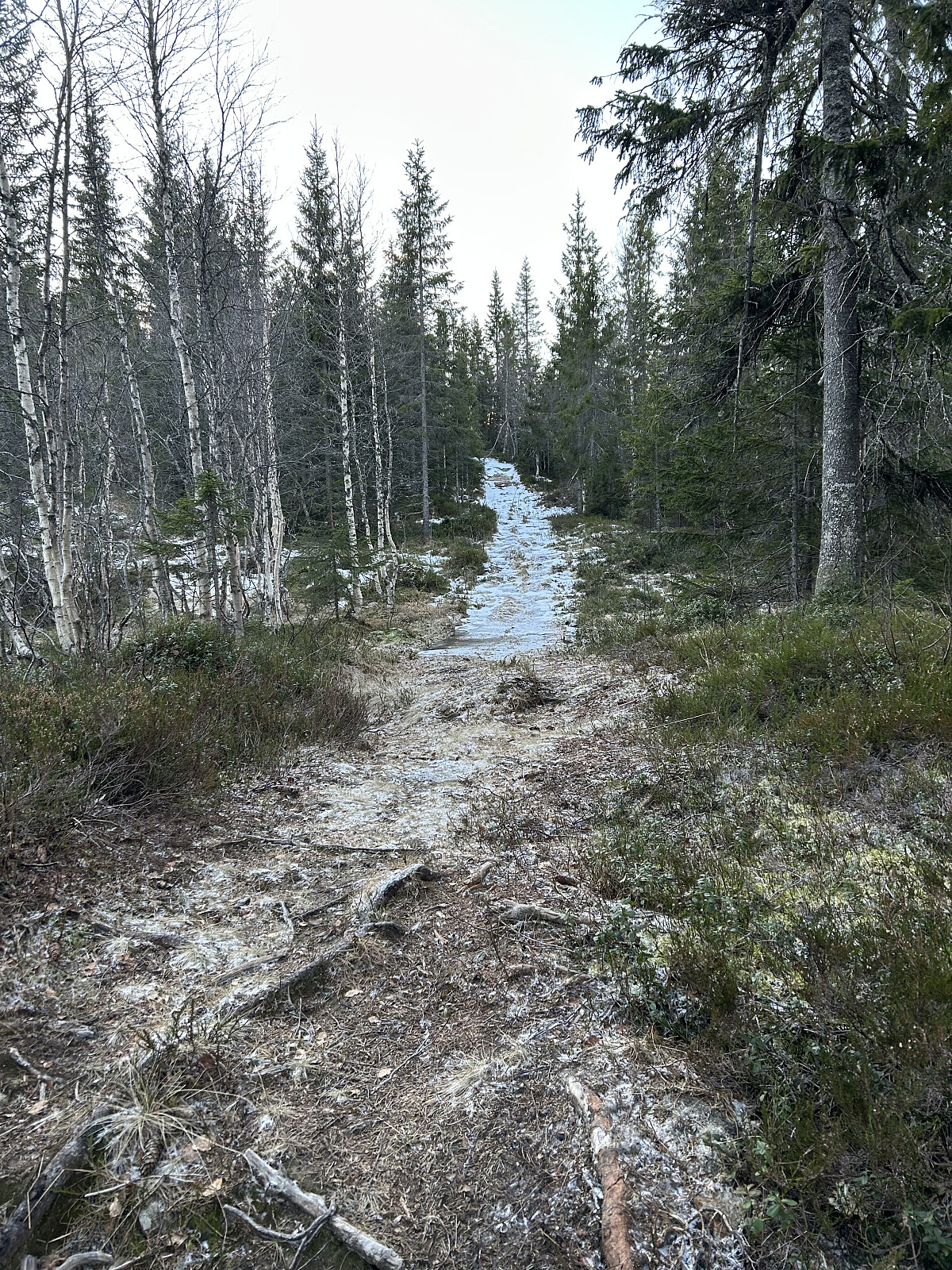 Jeg hadde nesten glemt hvor langt det var å kjøre dit. Det var fortsatt en del is på veibanen, men det gikk for så vidt greit. Da jeg svingte mot Svartjern og kjørte videre oppover, var det enkelte steder med is og ekstremt glatt, selv med 4x4 og piggdekk. Jeg er vant til å kjøre på skogsveier året rundt med is, snø og vann, men denne biten føltes litt skummel. Likevel valgte jeg å ta sjansen og fortsatte oppover.