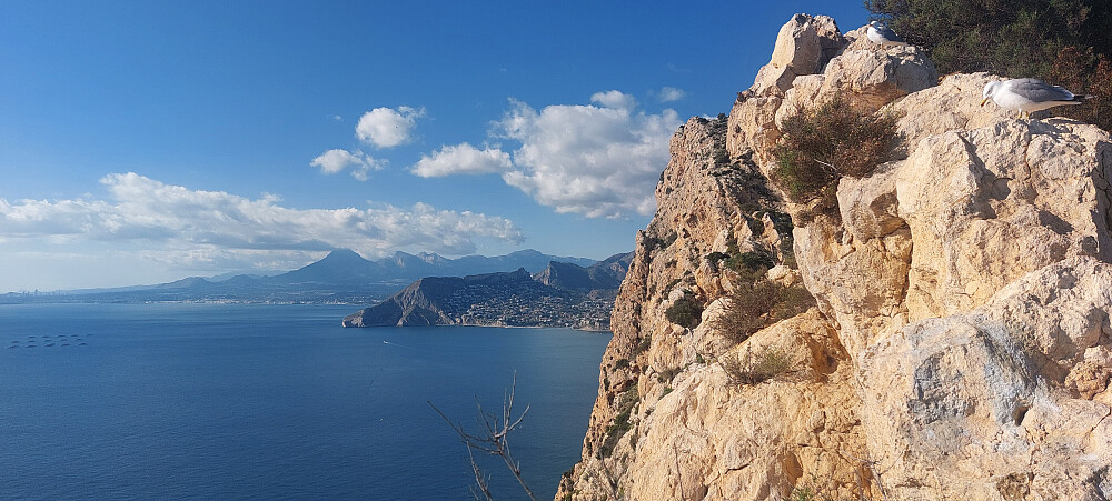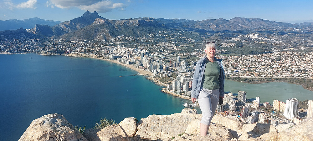 Meget bra utsyn i alle retninger på toppen. Benidorm med byfjellet Serra Helada mot sør-vest og utsynet over byen Calpe. Satt lenge og nøt utsikten.