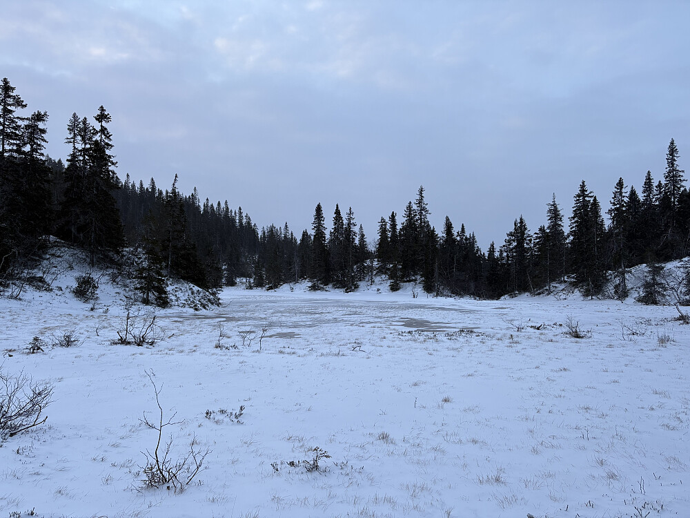 Lettgått med fryste myrer. Noen våte gjennomtråkk men helt fint. Tjern etter tjern ble passert før Krokvannet ble forsert i kanten. Holdt meg en armlengdes avstand fra kanten - i ettertanke en mindre god ide enn å gå midt utpå. Årvåken på kartet etter utos, ellers greit.