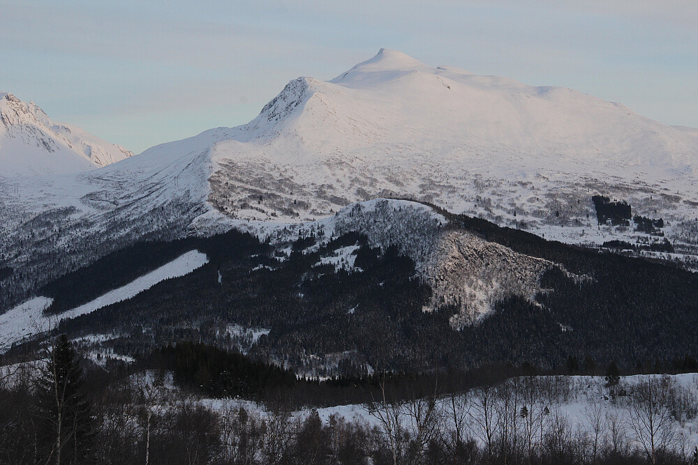 Etter formiddagsturen på Blåtinden, var planen å gå på Koppefjellet fra Aldalen. Fant etterhvert ut at vegen gjennom Aldalen fra Vatne til Hunnes var stengt for tida, så da falt valget på den lokale klassikeren Melshornet i stedet. Det hadde vært hinsides mye trafikk langs hovedtraseen fra Helgatun på Krøvelseidet, fantasien blant toppturfolket er like stor på disse kanter av fylket.