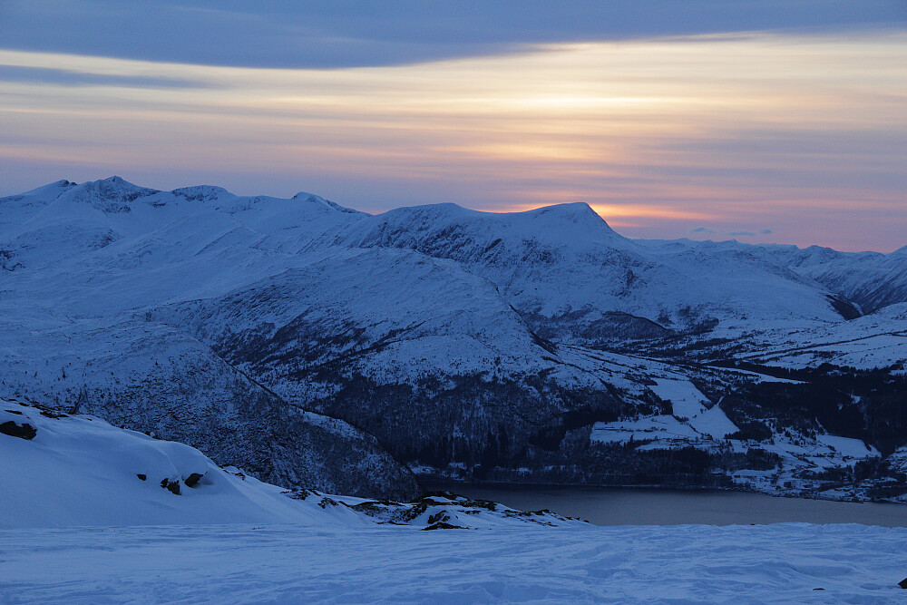 I stedet for å følge hovedløypa til topps, la jeg etterhvert oppturen over Grøthornet i ettermiddagssola, og fortsatte til Melshornet i solnedgangen. Et veldig fint alternativ. Sjølv om det var mye spor i fjellet, fant jeg mange "lommer" av urørt laussnø på tur ned. Been there, done that.