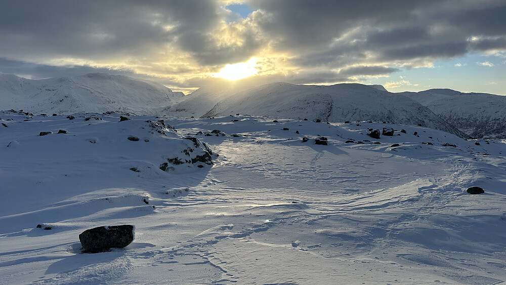 Strålande ver og tur til Orkja på truger. Ganske så vindpåvirka snø og dårlig skiføre med forlite snø. Likevel var det mykje folk på parkeringa til Olahansfjellet som ville teste ski lykka!