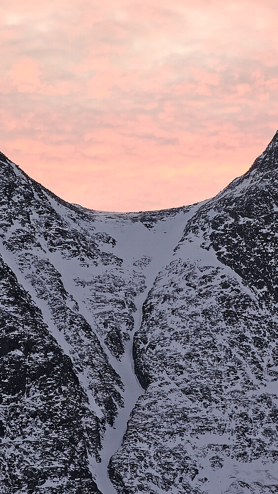 Vurderte å ta med meg Jønnstadkollen, men droppet denne da jeg prioriterte det å ha så bra lys som mulig ned renna i stedet da tiden begynte å renne ut.