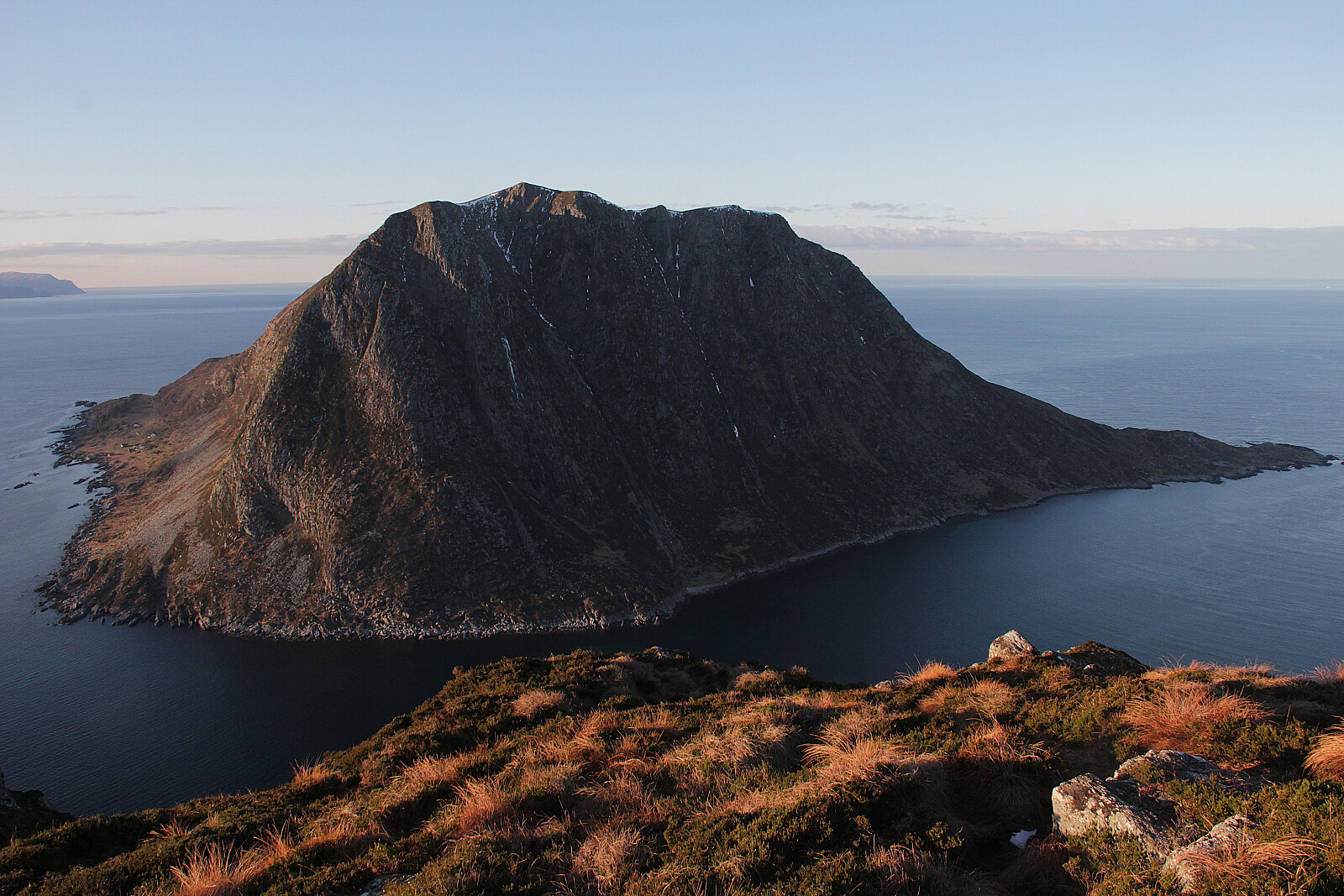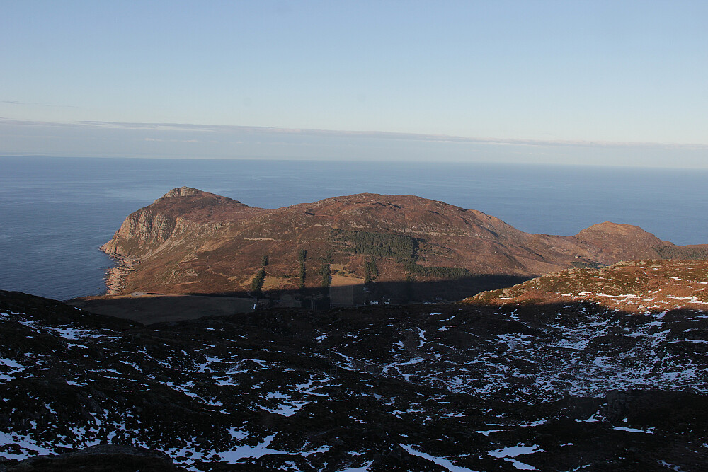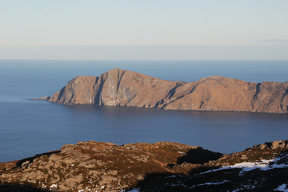 Tur m/ Arnt. Flott dag med vindstille og varmende sol. Fin utsikt til omkringliggende øyer. Litt issvuller i stien opp og ned fra fjellet, ellers tørre forhold.