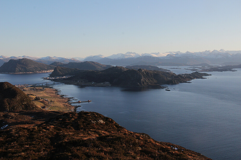 Mot Bergsøya med Fosnavåg og Leinøya med Leine.