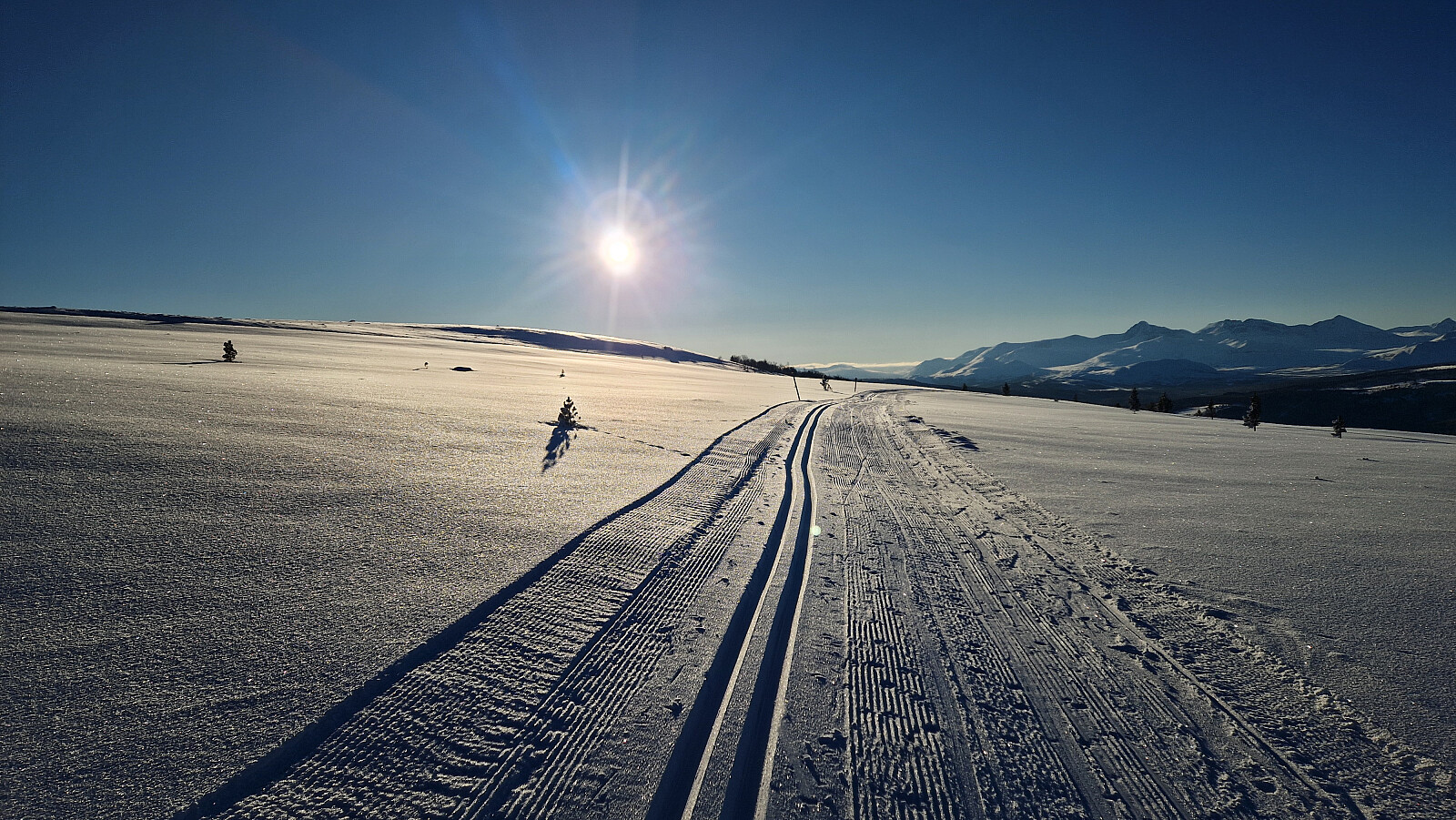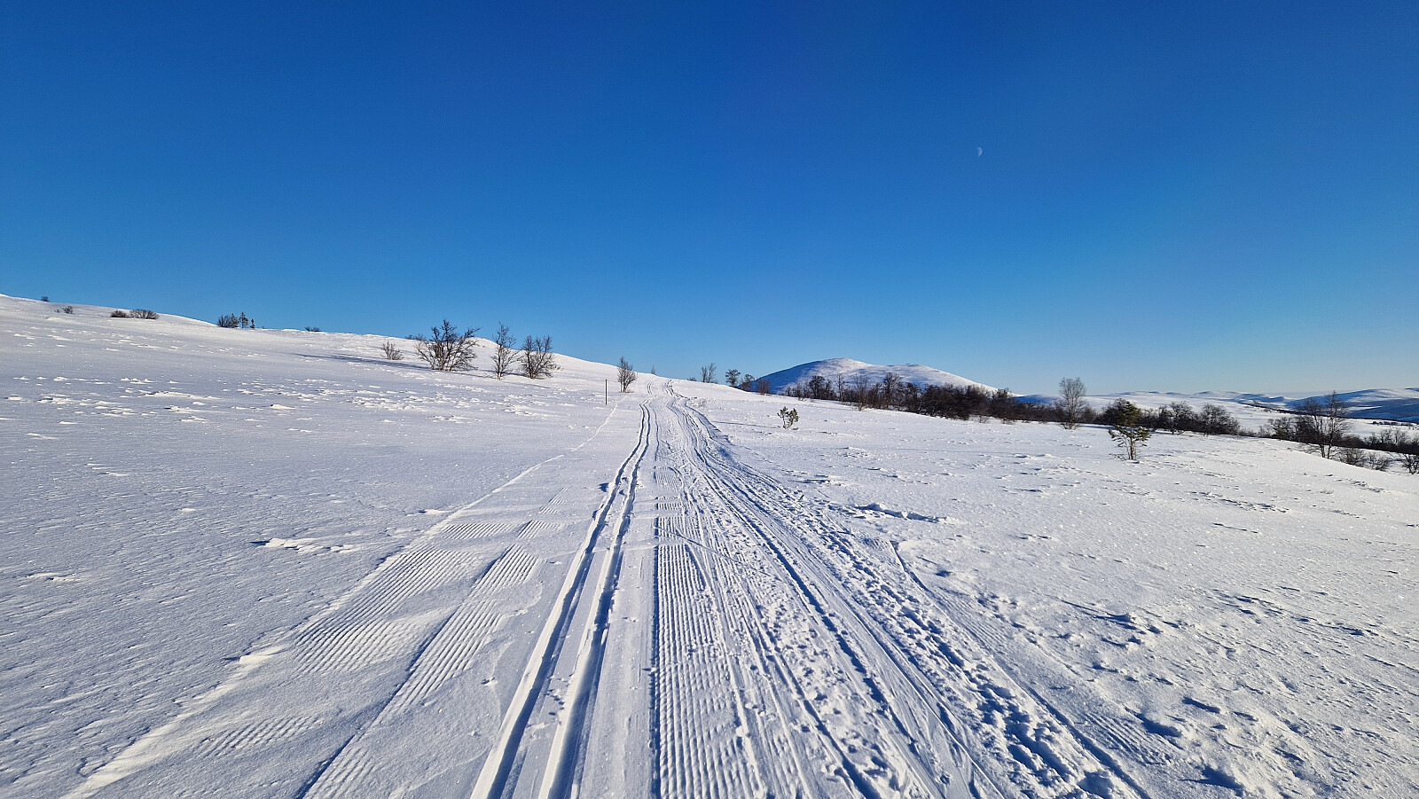 Det kjølige været fortsetter og i natt var Folldal kaldest i landet med -34 grader. Til gjengjeld får vi noen helt fantastisk dager med sol og blå himmel. Måtte ut en tur I dag også så det ble løypeski og start på Verket. Erling ble med i dag og vi gikk samme rute som forrige helg via Appelsinhaugen og vidre mot Grønhøbua. Her ble det som vanlig pause. Regnet med flere tok turen så vi fyrte opp i ovnen. Mye mildere her så vi tenkte jo skulle ta hele runden via utsikten ned til Beitrusten. Vi satte så kursen mot trimkassa ved Jensasetra men fant fort ut at det ble for kaldt så vi snudde og retunerte tilbake til Grønhøbua og vidre ned tilbake mot Verket.