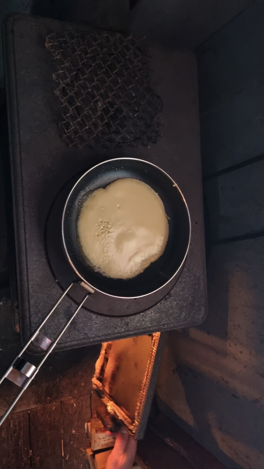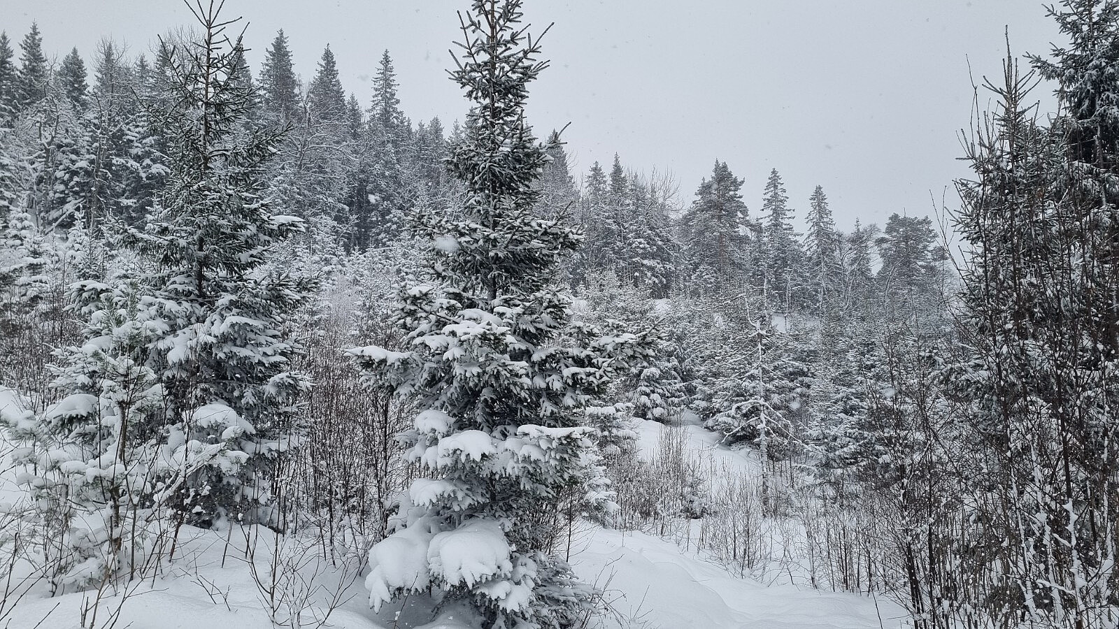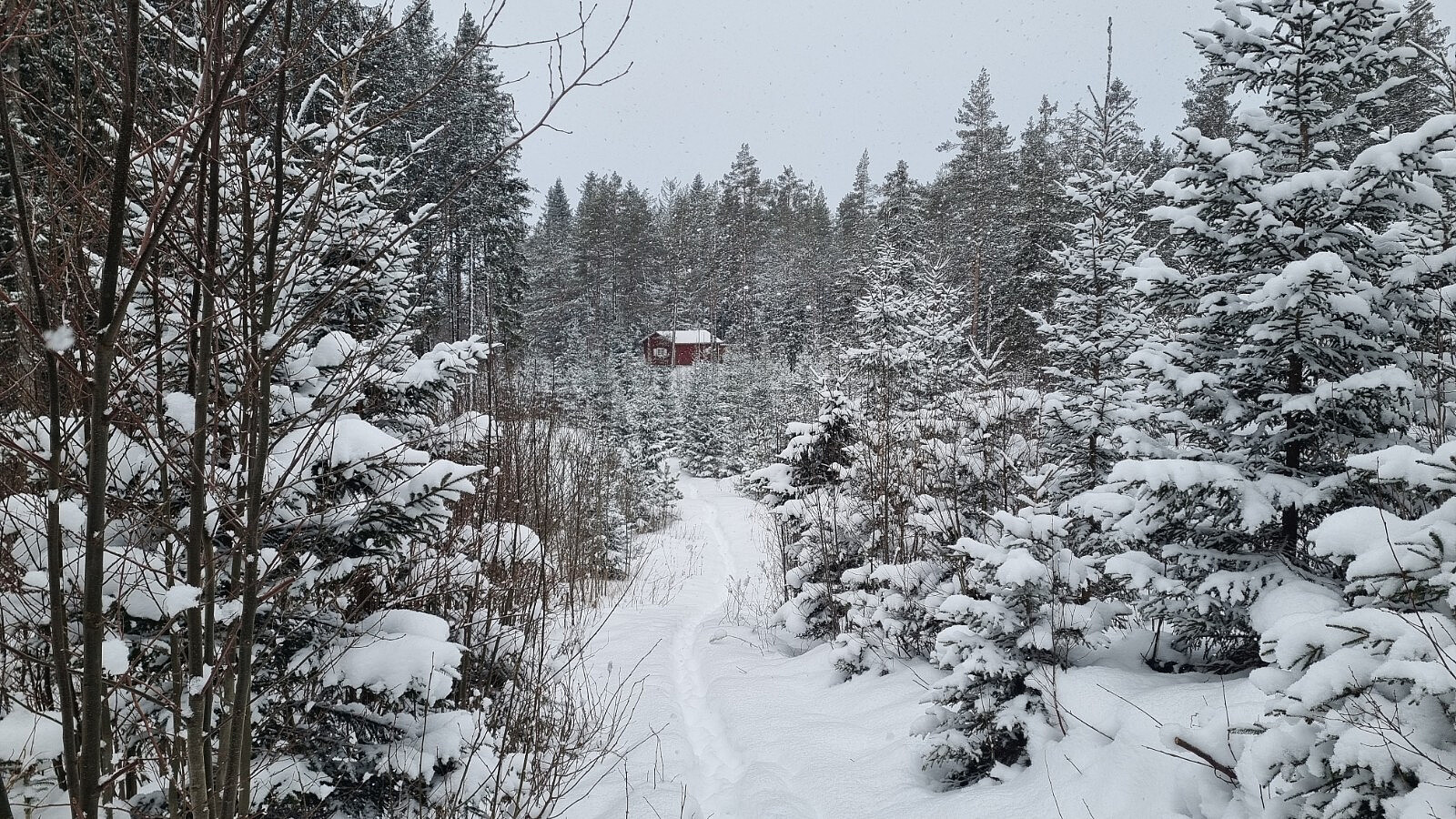 I snøværet tråkket vi oss opp til Blåfjell. Fyra i ovnen og stekte lapper på ovnen. Kosa oss i lenge i hytten her oppe i dag. Nydelig i skogen med alle trærne med snø på. Berit og Jan var med.