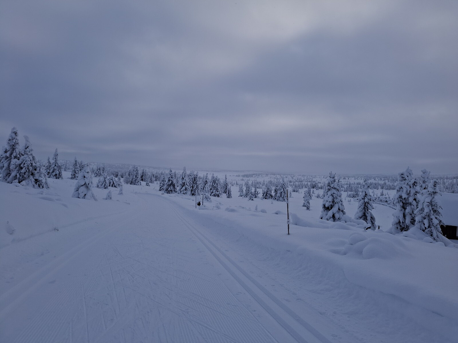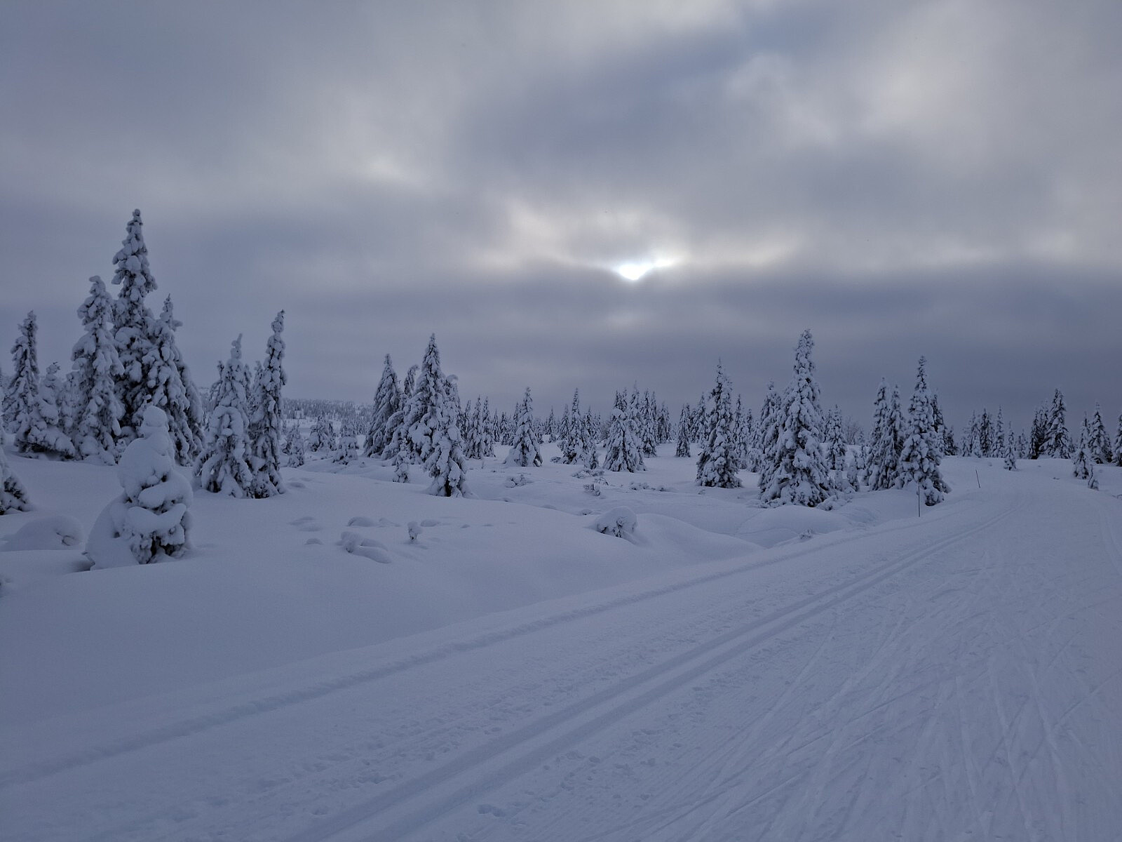 Gikk tur/retur Nysætra, om Neveloset tilbake. Overskyet, glimt av sol, rundt 10 kuldegrader.