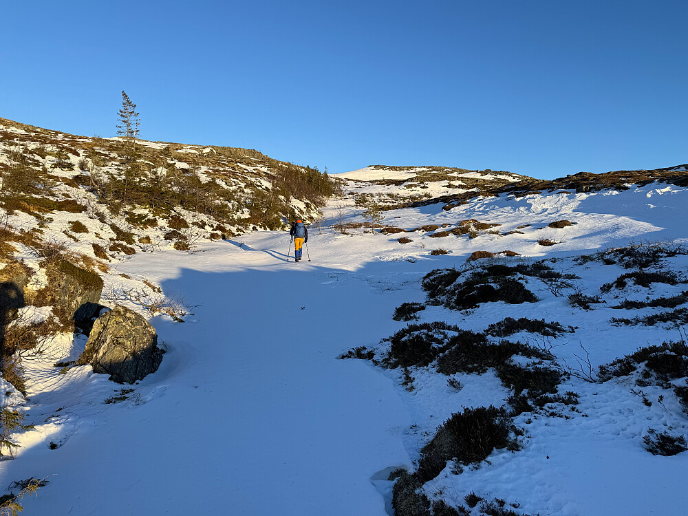 Turen gikk over all forventning. Fikk øye på et plast-bånd på et tre som fikk oss innpå stien som var snødekt. Lett og fint på snaufjellet.