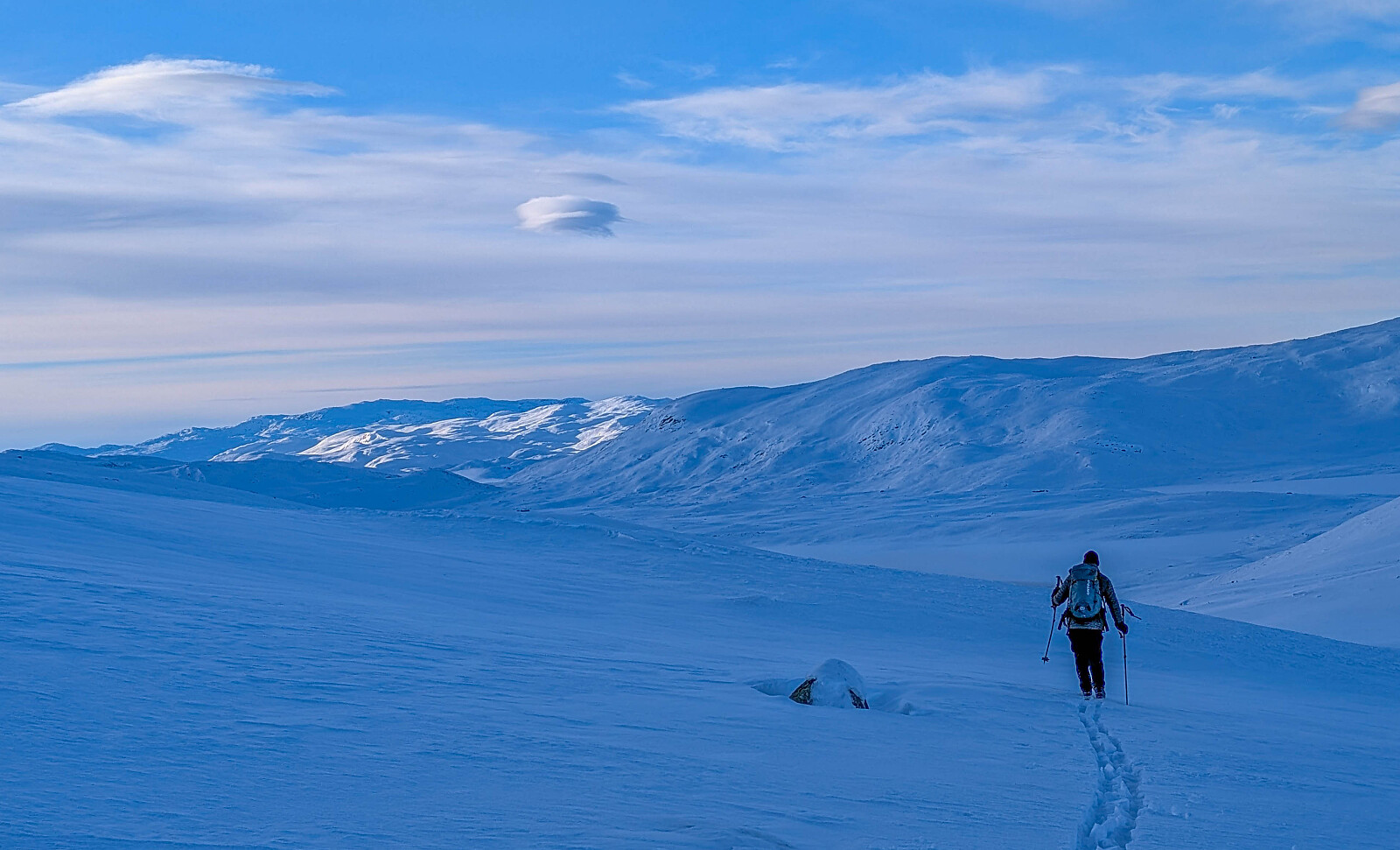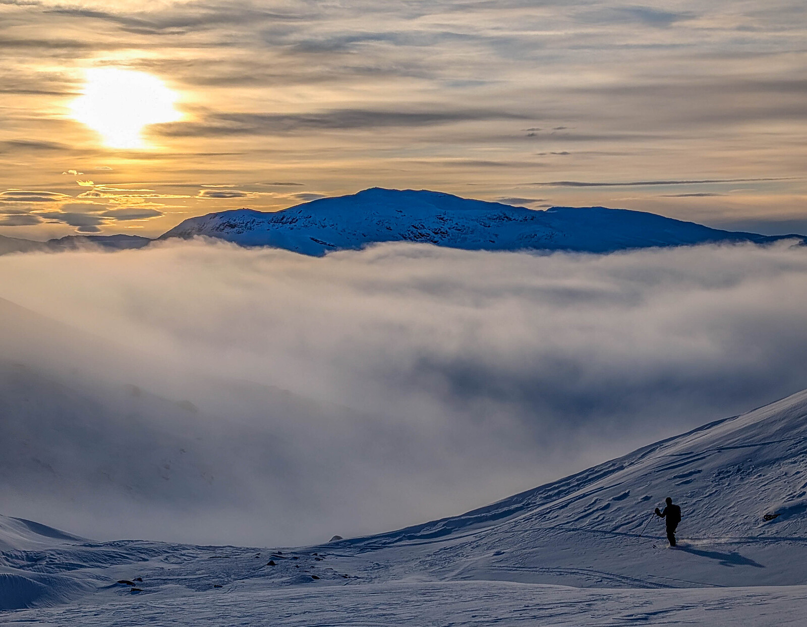 En fantastisk fjellskitur med kjæresten - vi kom opp og over skydekket, gikk i sola hele dagen. Vakkert landskap som gir rolige inntrykk og nytelse.