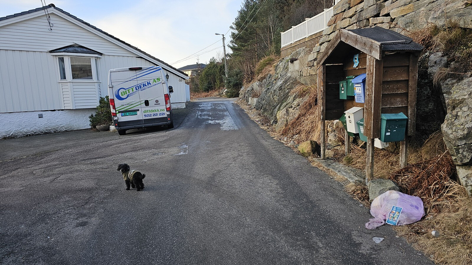 Jeg kjørte svært bratt vei opp i et boligfelt til stistart. Heldigvis var det både mulig å parkere og snu der oppe.