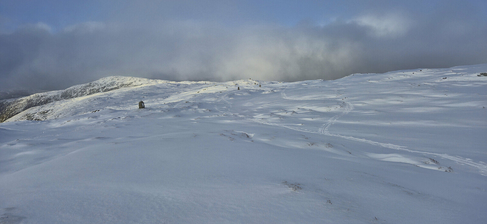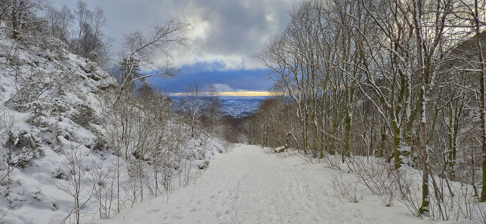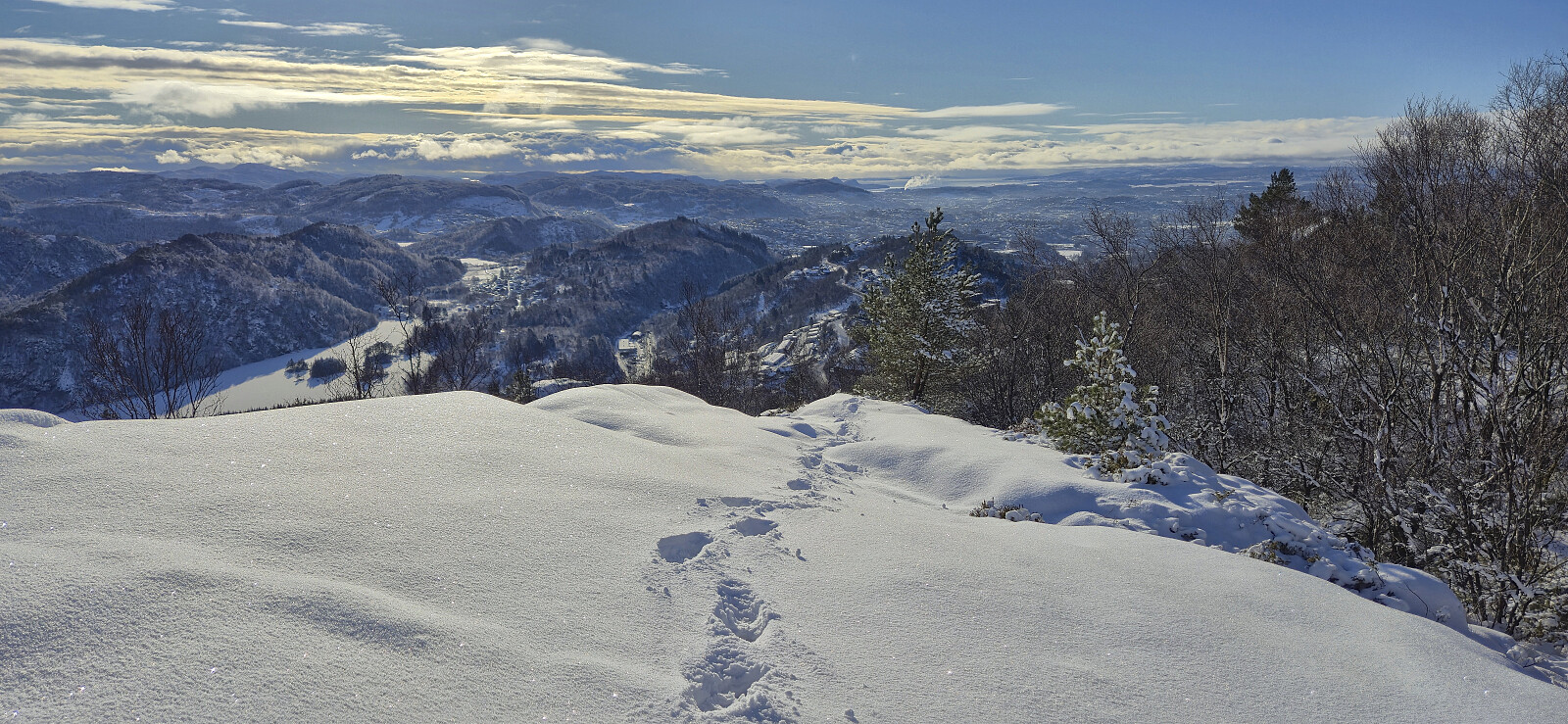 Saturday hike in fresh snow exploring a new route to Hauggjelsvarden via Erdalsvarden. The trailhead from Helldalslia was marked however the trail itself was not always easy to follow, largely due to the snow but also due to lots of fallen trees partially blocking the way. How closely I later followed the trail towards Erdalsvarden I'm not sure but I think I did pretty good. From Erdalsvarden I headed off-trail towards Valhal and then continued to Byfjellenes høyeste punkt and Hauggjelsvarden, before circling back to Turnerhytten and descending via a (for me) new route passing by Gimle. During the descent, I made a quick visit of Krossen where I was able to follow a trail almost to the highest point that also continued to the gravel road to the south. The hike was finally concluded with a light jog down the gravel road in order to return to Sædalen in time for the bus back to the city center.