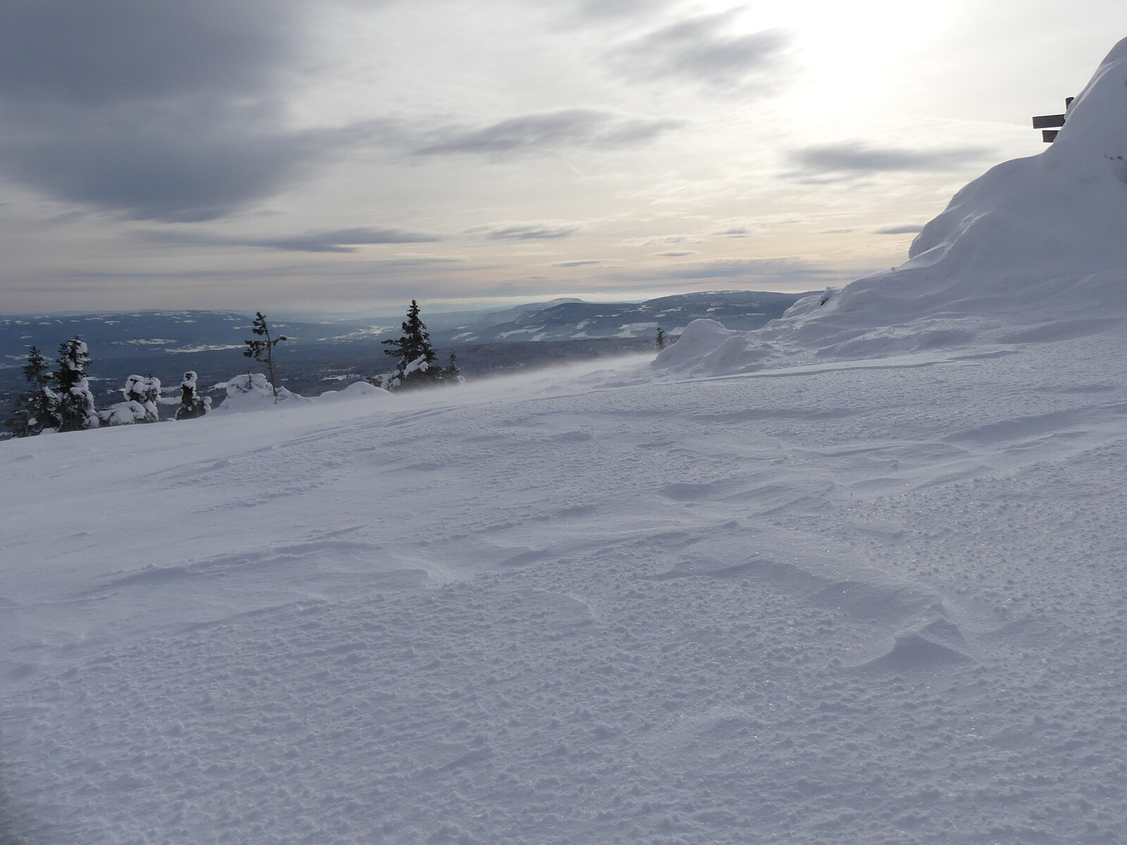 Tur alene i samme gode temperatur som sist, men mye vind og det blir en nokså kald tur. Løypa fra i går har blåst igjen så det blir på ny, tung brøyting opp på Engulvsfjellet.