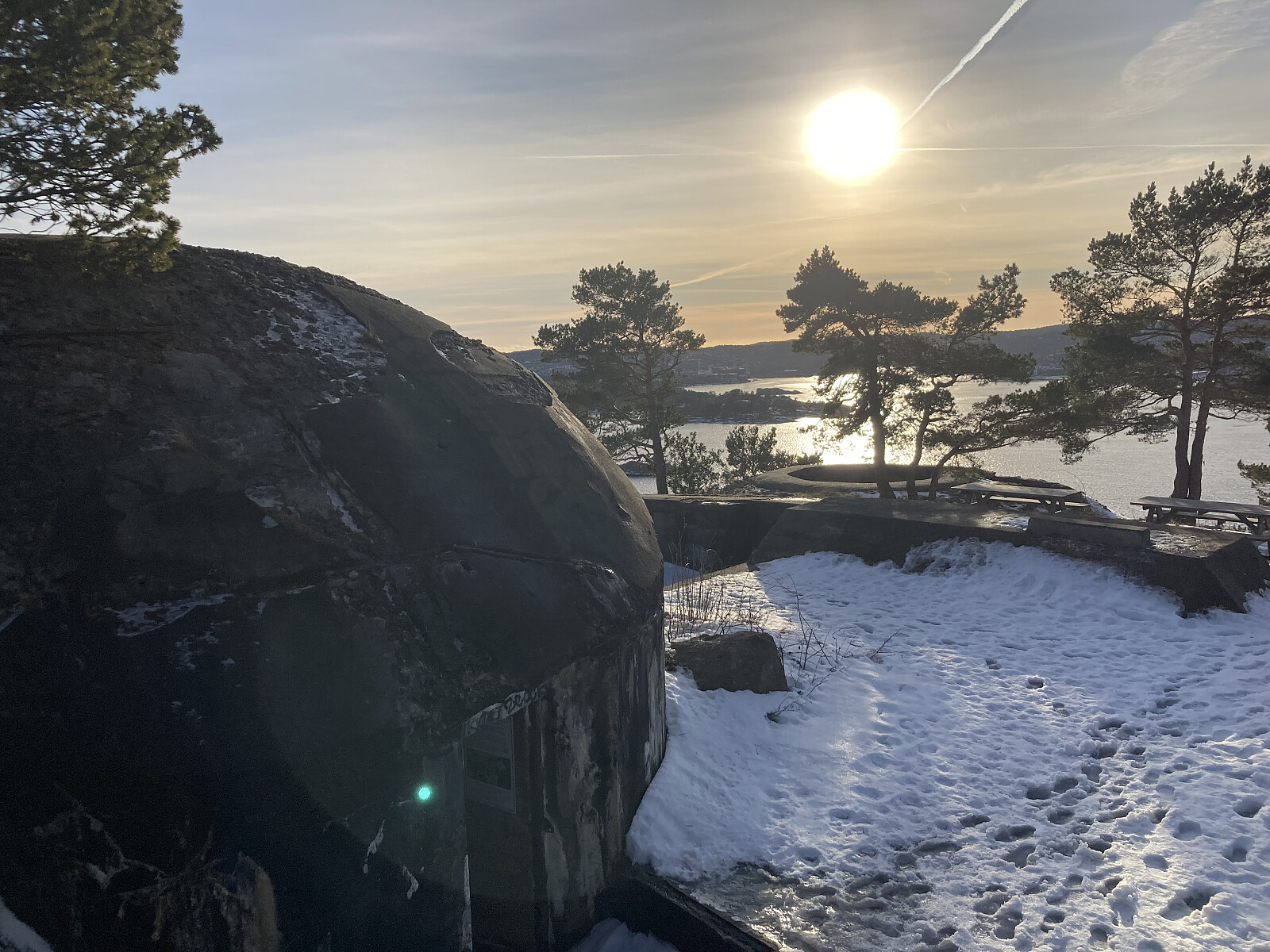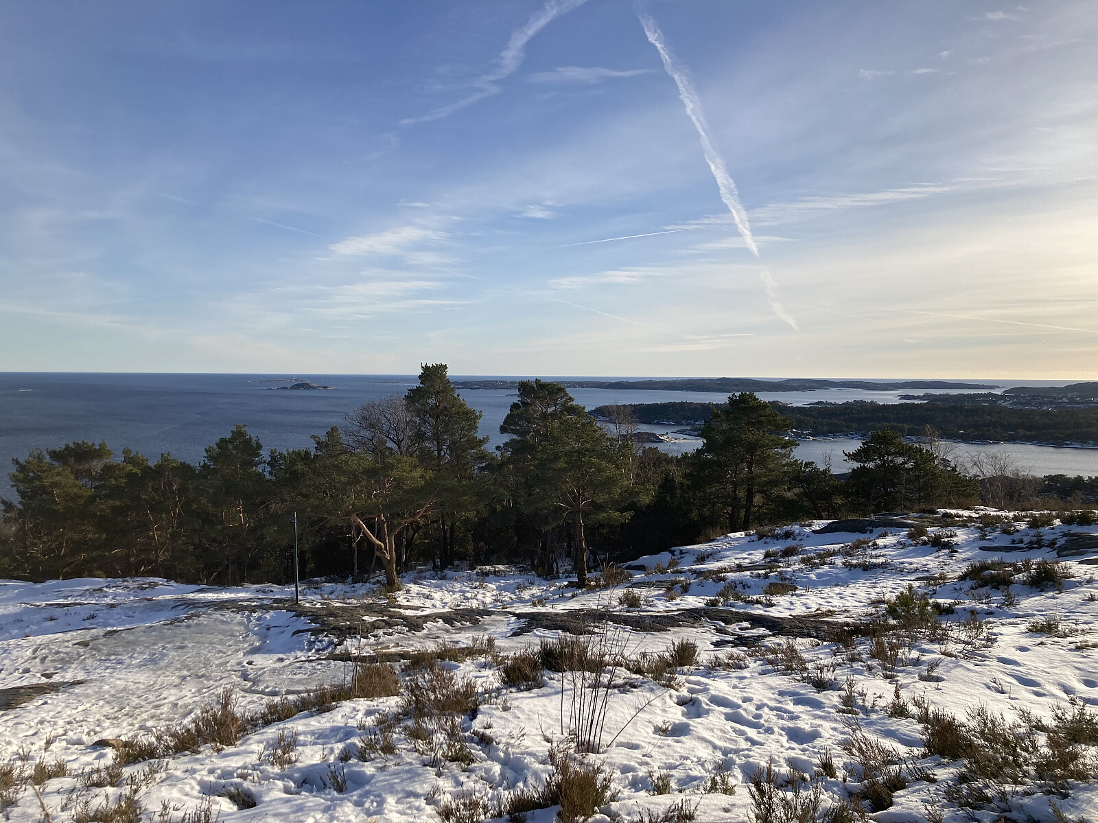 Bytur ble avsluttet med en tur til toppen av Odderøya for å nyte det fine været. Noe snø/slaps, men stort sett greit å gå.