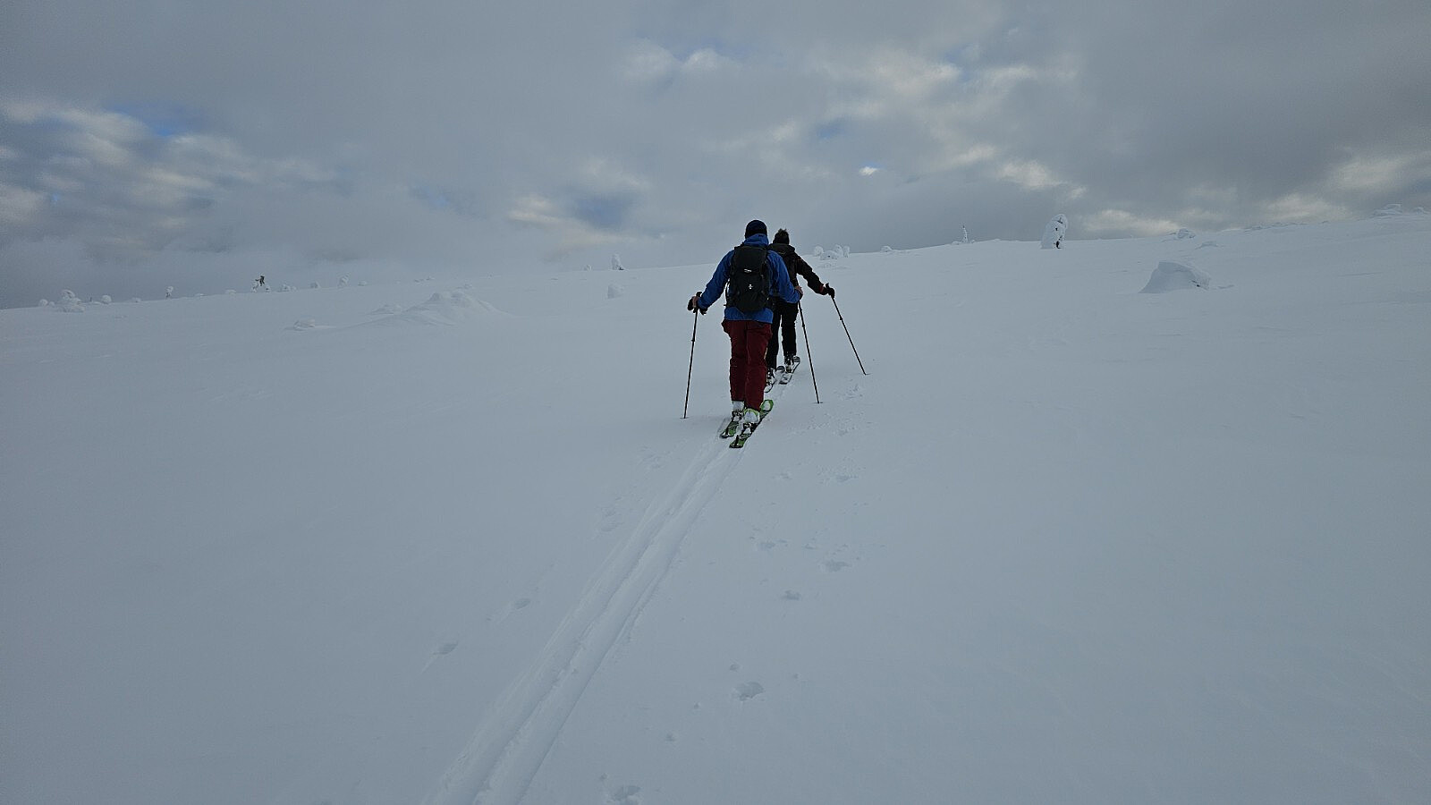 GW og KF dro på langrenn i dag for å varme opp til morgendagens skirenn. AS, TMT og jeg satset heller på en rando tur opp på to lokale topper. Vi kjørte opp til Tänådalen og opp til parkeringsplassen til alpinanlegget på Västra Kalven