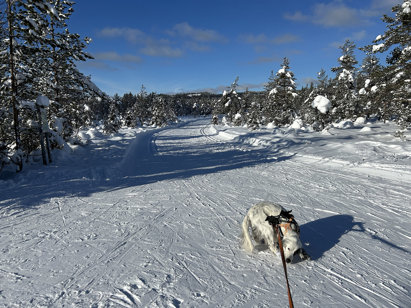 Skitur med Trym hjemmefra i strålende fint vintervær.