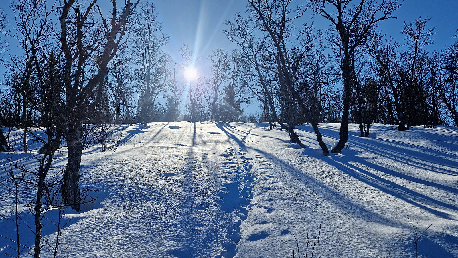 Snødde et par dager i uka som gikk så i dag ble det brøyting av sporet mitt. Skikkelig påskevær med varmegrader sol og blå himmel. Noen hadde gått med truger et stykke opp i skogen men fra der ble det brøyting. Ganske mye snø enkelte plasser. Fikk virkelig påskestemning og enda mer deilig å kjenne at både naturen og en selv våkner til liv igjen etter ukesvis med både 30 og 40 minusgrader.