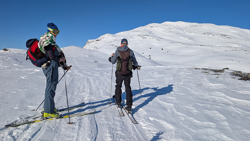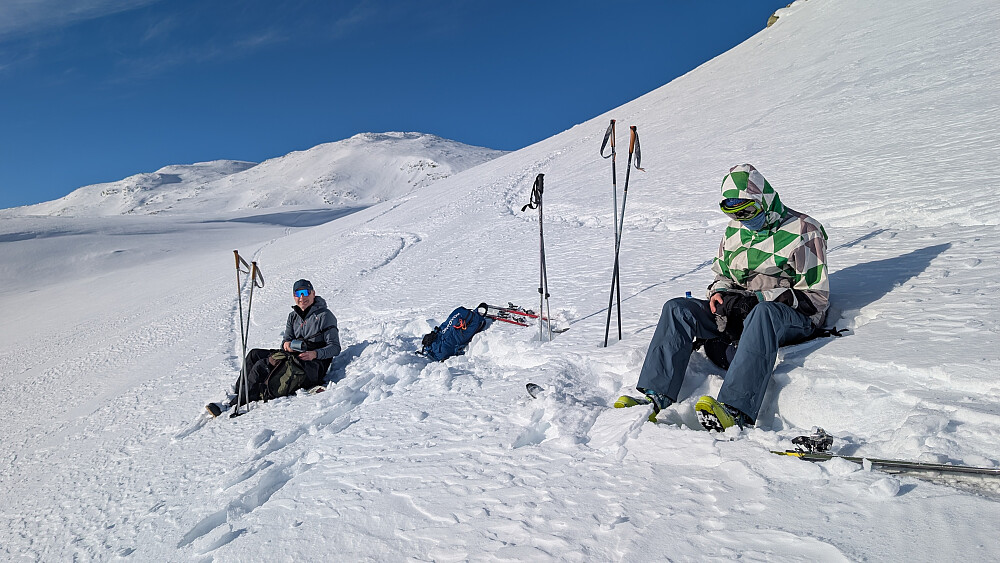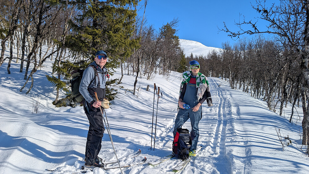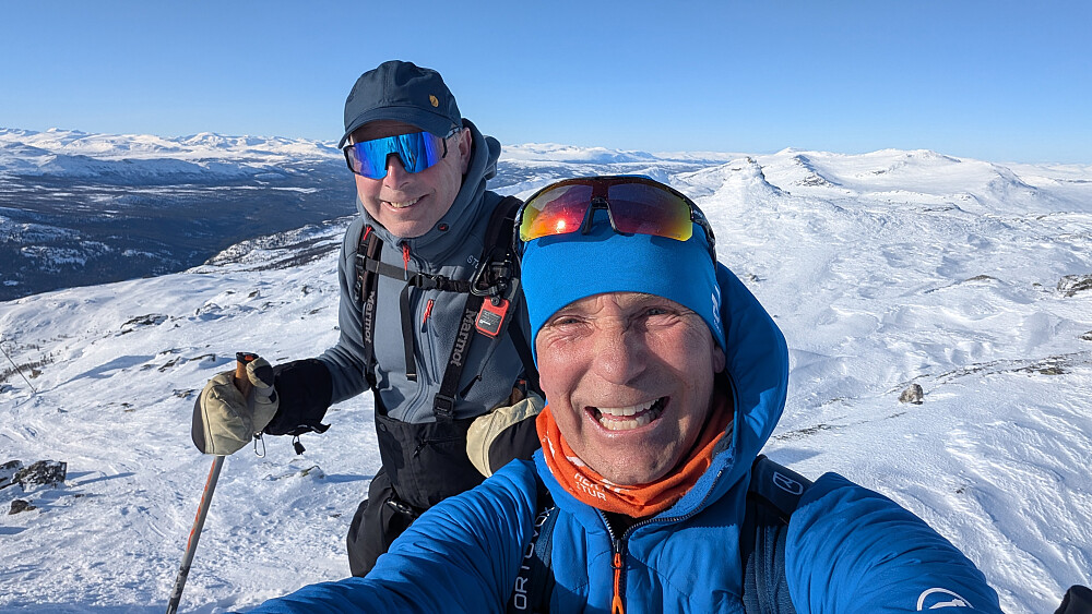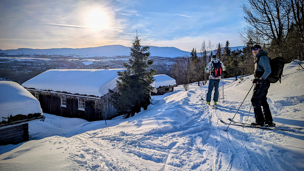 Endelig til fjells igjen. Første tur på Rando i år etter en trøblete start på det nye året. Nils Jørgen, Erlend og jeg dro avgårde mot Espedalen. Nydelig vær uten en sky på himmelen. Nær vindstille på hele turen. Det ble en flott tur med ymse føre og snøforhold. Herlig pudder i skogen, men også stedvis oppe på fjellet. En del plasser også et litt vrient...skummelt snø dekke som krevde at man var fokusert. Antydning til et slik "papplag" som gjorde fine svinger litt vanskelig. Man merker jo at man ikke er så vågal lenger...man tenker nok litt mer konsekvens. Erlends ungdommelige dristighet i pudderet spesielt i skogen med litt tett skog har nok ikke vi som er oppe i 60-årene, men synes vi klarte oss rimelig greit. Takker gutta for en flott dag til fjells til flotte fjell her oppe i Espedalen.