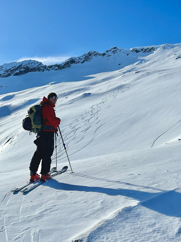 Prima dag med Sondre. Fantastisk nedkjøring fra Åbittinden. Vindstille, også på toppen.