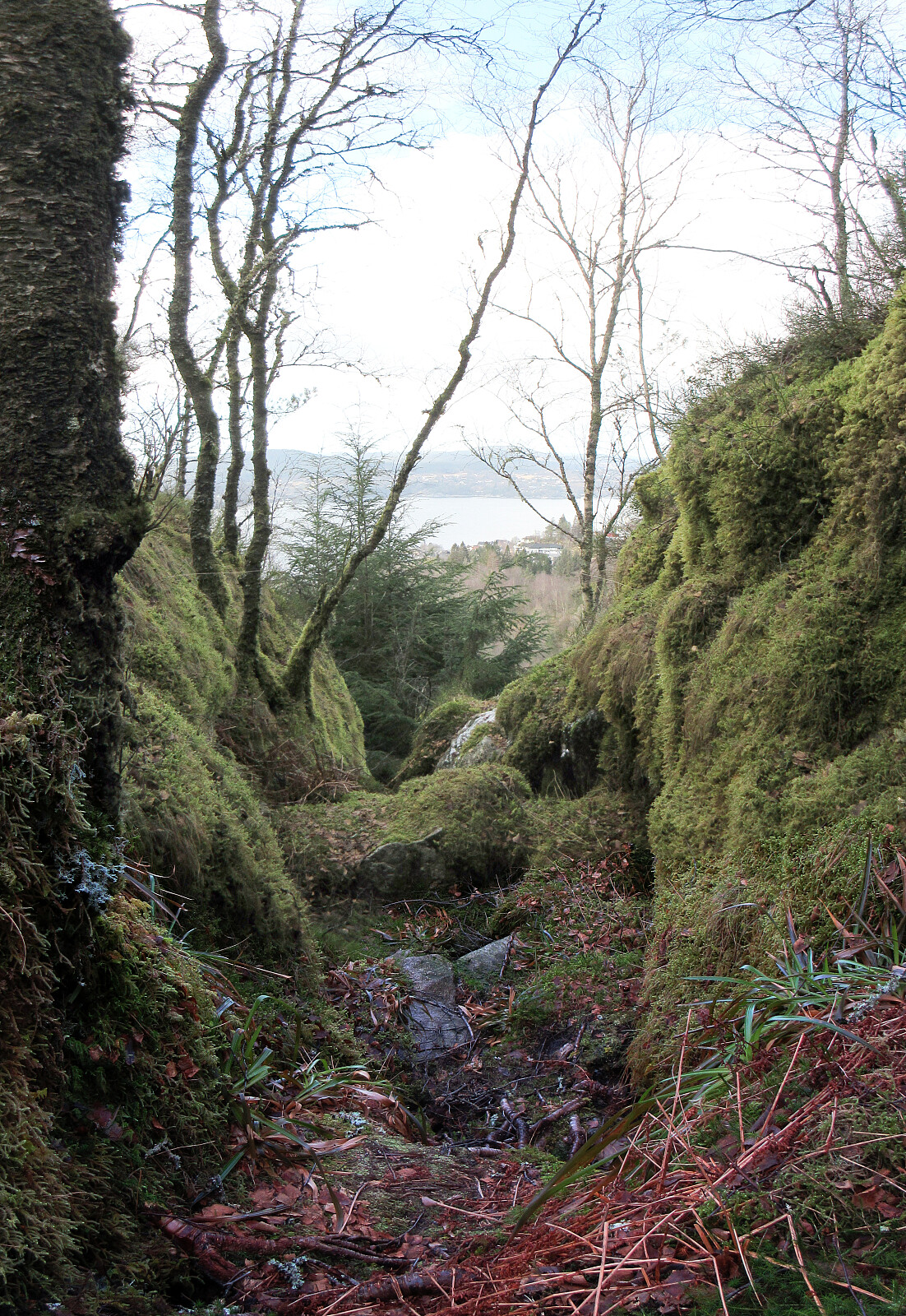 With also this Sunday inviting us to get some fresh air, we decided to visit Geitanuken again, while making it a round (an elongated one) from/to Åsane. We parked right next to Myrdalsvegen, not far from Åsane Arena, and then headed into the direction of Stornipa, first. In the northwest of Åsane Arena, we then also found a way to get over and into the forest. Stepping up to Stornipa was then just a question of a few minutes and the forest is actually quite nice there. Next, we wished to explore Morvikavarden and to get there, we crossed over Stornipa to connect with road Myrdalskogen in the north. On the northwestern side of "the big bend" of Myrdalskogen, we found an opportunity to "short-cut" further upwards through the forest. After yet again walking along Myrdalskogen for a short stretch (right underneath Riveskaftet), we then found the trail up the eastern ridge of Morvikavarden and from a point slightly south of its highest point, we then enjoyed some really nice views (mostly southwards). The next goal was to find a way down to Morviklien (further in the west) and at least first we even found a minor trail leading into this direction from Morvikavarden. One could argue even that this trail leads all the way down, but more correct is that it gets very unclear "half way down" and one needs to tread carefully in the rather steep terrain at Hestehjellane. In particular between about 200masl and 175masl, there's a need to circumvent some cliffs, also (it's fully doable, but some care is advised -- in one place, one even mounted a rope to assist). Continuing further down (westwards right underneath Hovdane) is then quite nice as the forest there appears almost mystical and "lost in time", somehow. We then found (without difficulties) the place, where we crossed the stream (again) in order to cross over to the northern side of Svehaugen (and to Morviklien there). Looking up the significant southern cliffs of Storfjellet is also impressive. A bit further westwards on Morviklien (and into Kolbudalen), we found the trail head for Olderhaug. This trail (via Toppegotene) up to Olderhaug is quite steep, but straight-forward to use (nice trail!). From Olderhaug, one can enjoy some really nice views in almost all directions! From there, the plan was then to simply cross over the heights to Geitanuken, but with one detail: pay Svenskenipa a visit, also. And so it was: we found that someone had cut out a new (simple) trail down to Svenskenipa from Jubileumsstien up on the ridge, which clearly eased this excursion (otherwise, some medium bush would be needed). The views from Svenskenipa are actually very nice! After then walking across Geitanuken, the goal was to simply hike back down to our car. Originally, we thought to do so via Riveskaftet, but we somehow followed the main trail down (further southwards to connect to Myrdalskogen) before understanding that we had taken the wrong turn. Not really wishing to go back up again, we just followed the route down which already had used up. From "the big bend" of Myrdalskogen, however, we followed a trail northwards to Skansen, from where we then walked down the road Myrdalsvegen. All in all, this was a very nice hike (and a bit more adventurous than originally anticipated -- mostly, because of the westward descent from Morvikavarden).