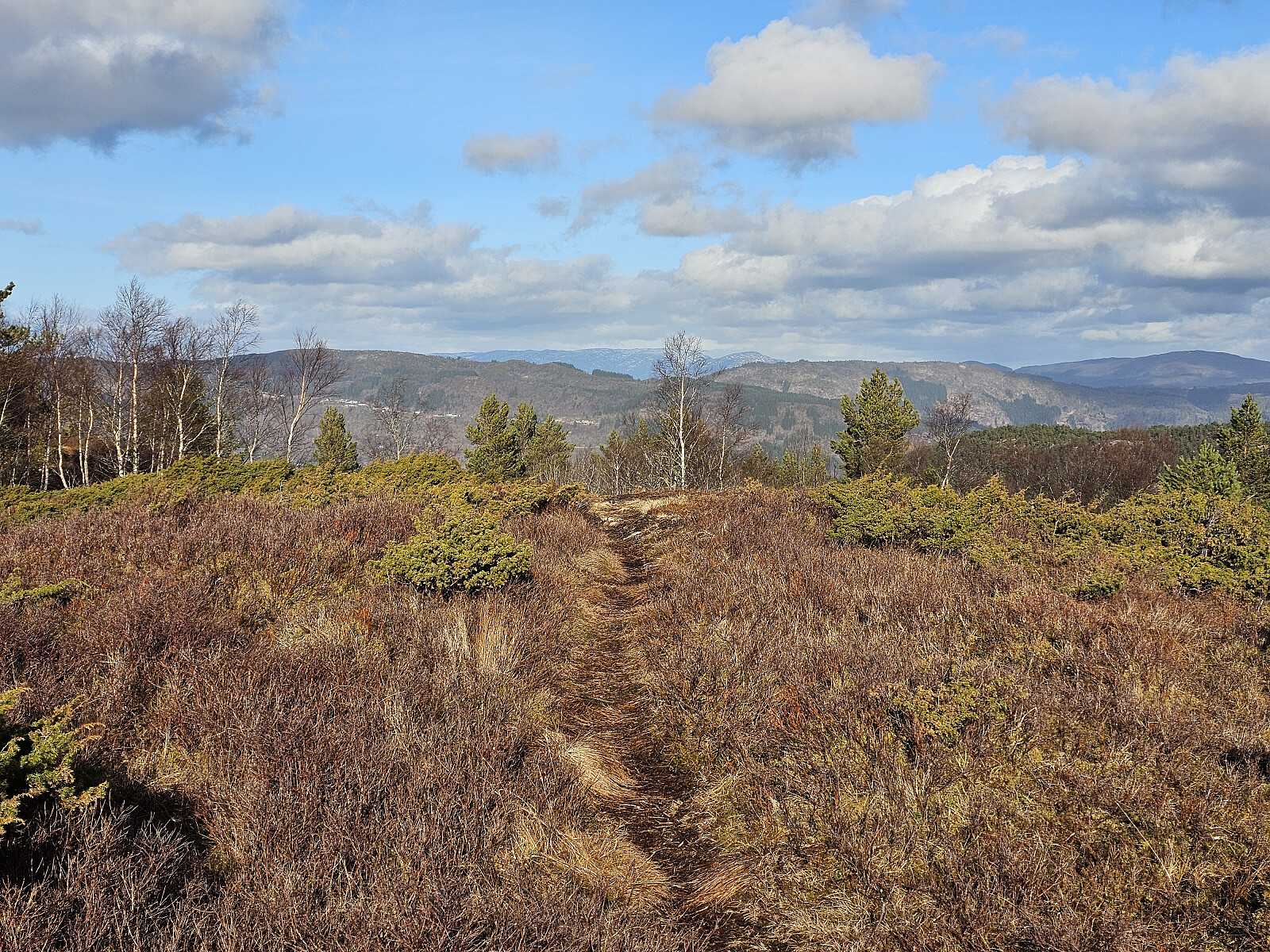 En fin skogstur på fine stier bortsett fra strekket fra Birkelansnipa til Birklelandsnipa SØ der det var myrete og bløtt. Berget 215 er en liten kandidat til listen "Alle topper i Bergen" men jeg valgte ikke å legge den inn.