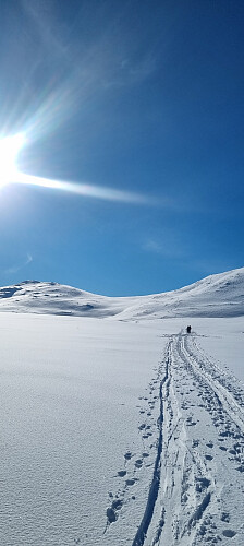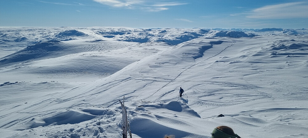 Turen med DNT Drammen i flott vær. Planen var å gå til toppen 1609, men ble endre til Storebottskarvet med veldig fin snø. Fin, jevn, lett puddersnø overalt også ned i skogen. Nydelig!!