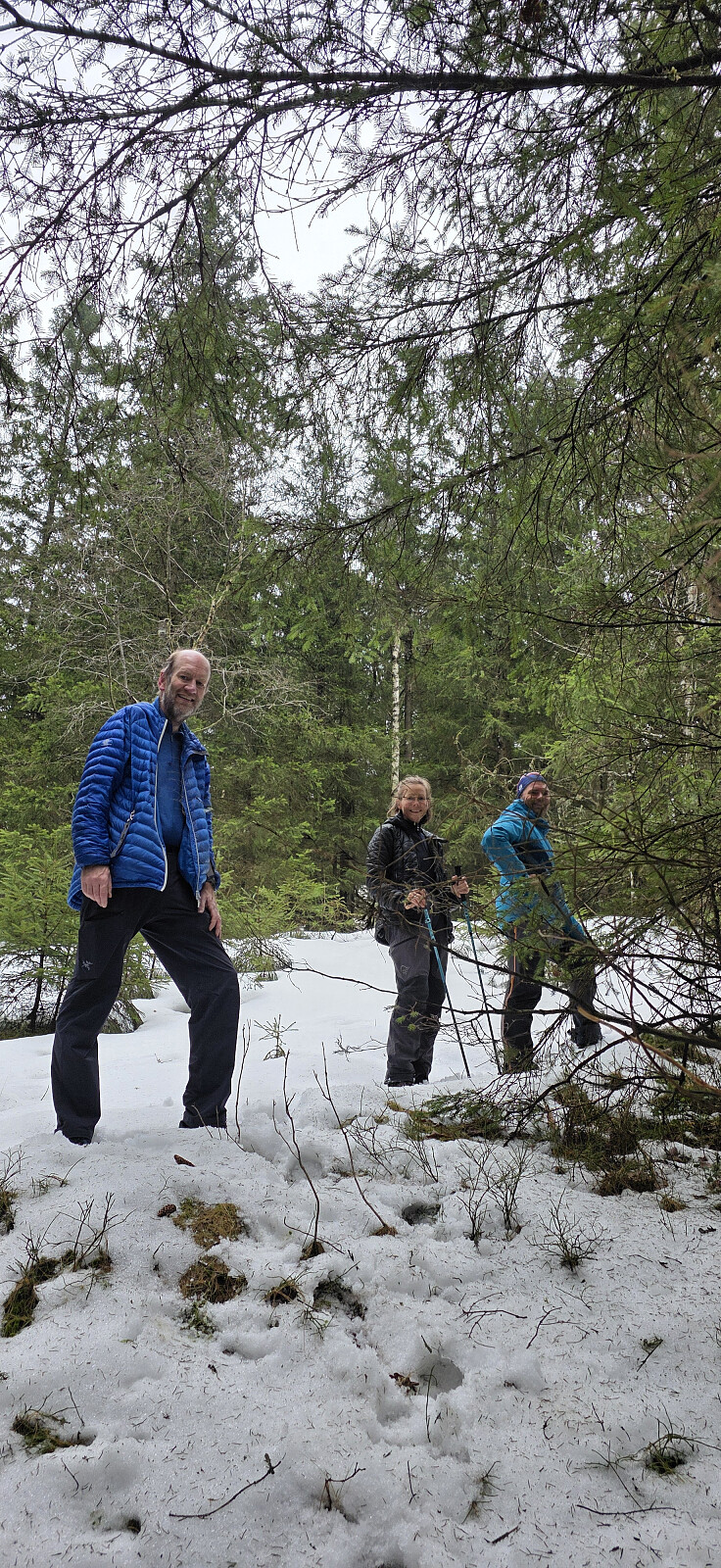 Skog, kløfter, våt og glatt snø som etterhvert fylte opp skoa med kaldt vann og surklete lyd for hvert skritt! Fine folk gjorde det til en fin tur, men det var dagens høydepunkt sammen med det å være på tur igjen ❤️